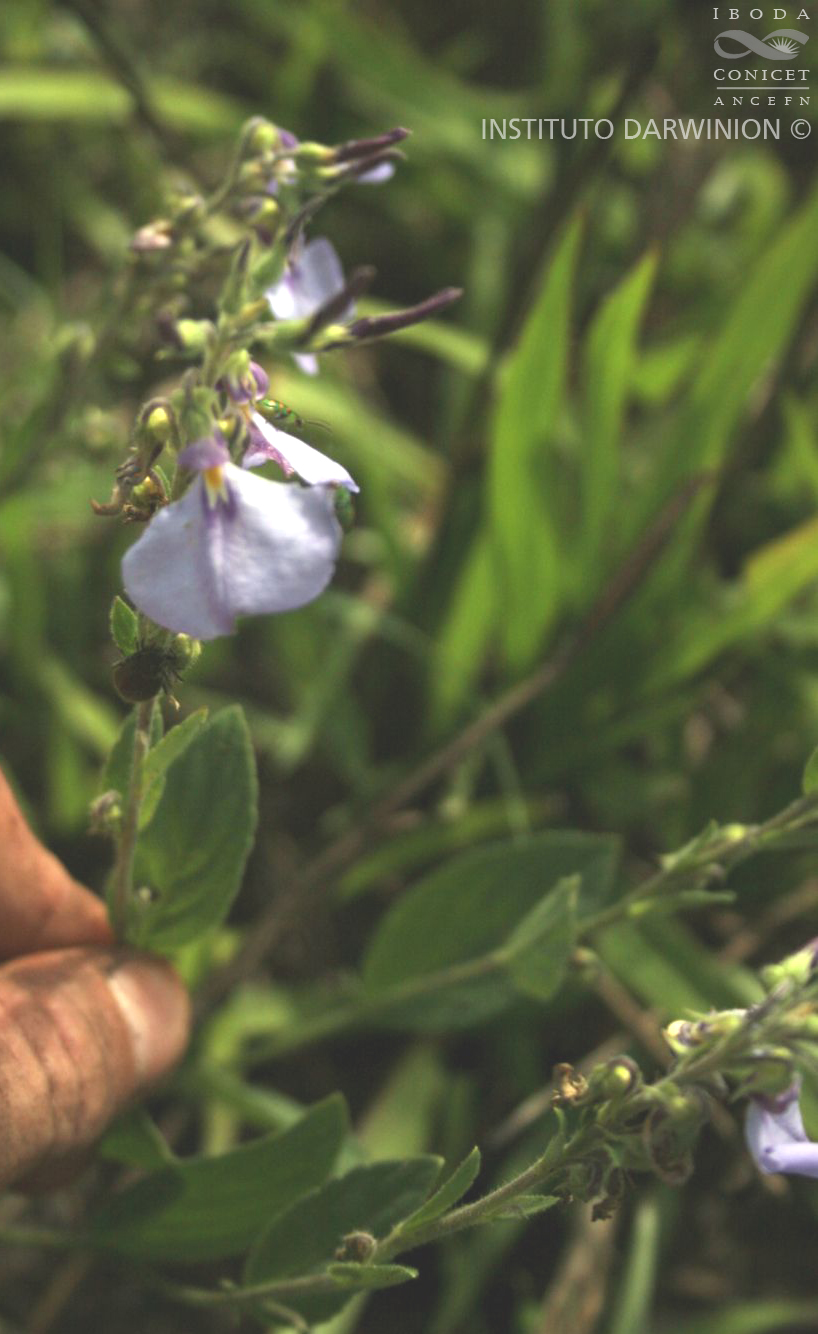 Sufrútices o hierbas perennes de 30-50 cm de alto, simples o apenas ramificados desde la base, en general bastante vellosos a tomentosos y de caule leñoso. Hojas alternas, con la superficie pubescente a densamente tomentosa, las superiores más pequeñas que las inferiores; pecíolos breves; láminas lanceoladas, ovadas o lineares, de 2,5-7 × 1-2,9 cm, base aguda y atenuada, ápice agudo a redondeado, margen aserrado a dentado. Flores violáceas a azules con una mácula amarilla y blanca en la base del labelo, dispuestas en pseudoinflorescencias racemosas terminales; sépalos desiguales, lanceolados a ovados, de 4,5-7,5 mm de largo; pétalos superiores ovados, oblongos a elípticos; pétalos laterales falcados, oblongos a ovado-lanceolados; labelo con la base angosta, de 6-9 mm de largo, la lámina oblonga a trapezoidal, más ancha que larga, de 8,5-15,5 × 11-21 mm; estambres con los filamentos de 0,4-0,5 mm de largo, anteras de 1,5-2,5 mm de largo, los 2 estambres inferiores con apéndice nectarífero en forma de gancho y el dorso tomentoso a velloso; ovario ovoide, glabro; estilo con forma de «S» con la base angosta; estigma truncado y oblicuo. Cápsulas ovadas, glabras, con el cáliz persistente. Semillas ovoides de 2-2,5 mm de largo.
