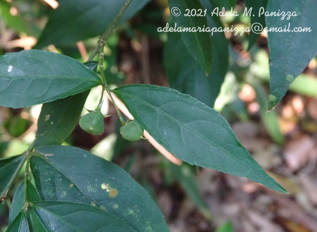Observaciones: Vegetativamente, Pombalia bigibbosa presenta notables similitudes morfológicas con respecto a P. atropurpurea; ambas especies se asemejan por ser arbustos con hojas opuestas. Sin embargo, difieren por el tipo de inflorescencia y por la morfología de las piezas florales.