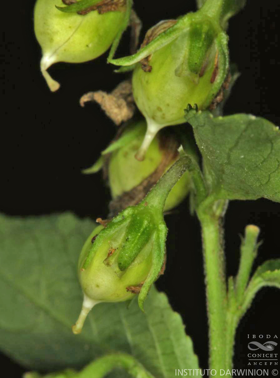 Sufrútices o hierbas perennes de 30-150 cm de alto, en general muy ramificados, levemente pubescentes. Hojas alternas; pecíolos de 1-10 mm de largo; láminas elípticas, ovadas a lanceoladas, de 5- 16 × 0,5-6 cm, base atenuada, ápice agudo a acuminado, margen levemente aserrado. Flores de color blanco a crema, con una mácula amarilla central en la base del labelo, axilares, dispuestas en inflorescencias de tipo racemosas; sépalos iguales a subiguales, lanceolados, de 3-5 mm de largo; pétalos superiores subfalcados, oblongos, lanceolados a ovados, de 3,5-5 × 1-1,5 mm; pétalos laterales ovados, oblongos a lanceolados, contraídos en la región media, de 4,6-6,5 × 1,5-2,5 mm; labelo unguiculado, con la base de 3-6 mm de largo y la lámina suborbicular a trapezoidal, notablemente extendida y ancha, con el ápice en punta, de 6-11 × 4-11 mm; estambres con filamentos de 0,5-1 mm de largo y anteras de 1-1,5 mm de largo, los 2 estambres inferiores con apéndice nectarífero en forma de gancho extendido, finamente pubescentes en el dorso; ovario glabro, de 1-1,5 mm de largo; estilo recto o sigmoideo. Cápsulas ovoides, de 7-8 × 5-7,5 mm. Semillas ovoides.