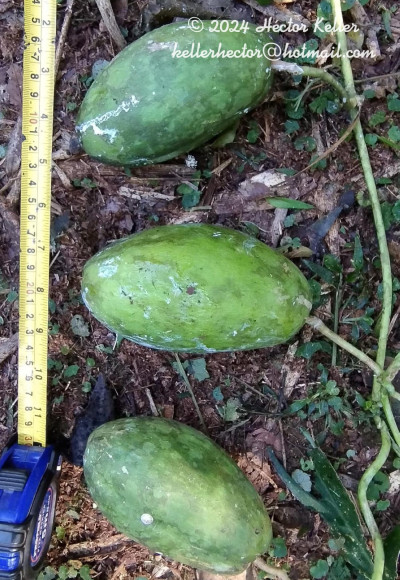 Subarbusto voluble, ramas glabras de 4-6 mm de diámetro; raíces tuberosas. Hojas con pecíolo glabro, de 2-8 cm de largo; lámina anchamente ovada, de 9-28 × 6-20 cm, membranácea, glabra en ambas caras y con coléteres en la base adaxial del pecíolo; frecuentemente con olor fétido. Inflorescencia multiflora, racemiforme o corimbiforme, extraaxilar, alterna; pedúnculo de 2-10 cm de largo, tomentoso-puberulento. Flores con pedicelo de 1-2 cm de largo; cáliz con lóbulos ovado-lanceolados de 3-4 × 1,5-2 mm, cara abaxial pubescente, cara adaxial glabra, borde ciliado, con 3-8 coléteres bajo el seno interno; corola con tubo brevísimo; lóbulos sublineales, carnosos, de 5-6 × 1,5-2 mm, dilatados en forma de bolsita hacia el ápice de la cara inferior; cara abaxial glabra, cara adaxial cubierta de diminutos tricomas; corona inserta en la base del ginostegio, blanca luego de la antesis, rosada antes de la absición; lóbulos sublineales, de 4 mm de largo, 2-furcados hacia el ápice en dos ramas largas y algo retorcidas; ginostegio largamente estipitado, de 4 mm de altura, cabeza estilar 5-gonal, plana; anteras de 1,5-2 mm de largo, con membrana apical reniforme; retináculo ovoideo-lanceolado, de 0,55-0,6 × 0,2-0,25 mm; caudículas descendentes, de 0,55-0,6 × ca. 0,1 mm; polinias péndulas, ovoideo-oblongas, de 0,65-0,7 × 0,25-0,3 mm. Folículos ovoides, de 22 × 8 cm, lisos, glabros, pericarpio grueso, esponjoso. Semillas comosas, obovadas, de 1,1-1,2 × 0,6-0,7 cm, superficie tuberculada en ambas caras en la zona apical, el margen suavemente dentado.