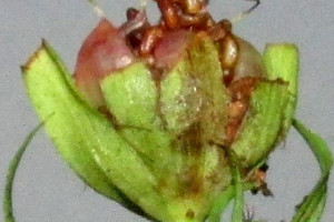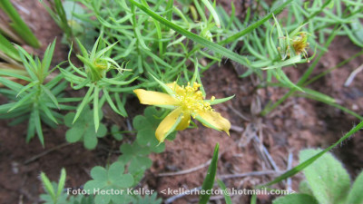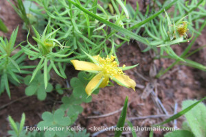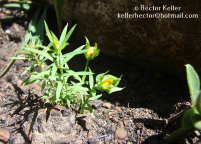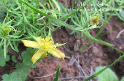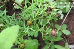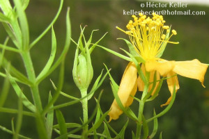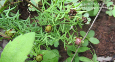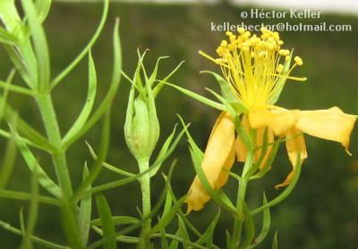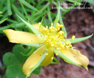 Hierbas erectas, de 2-13 cm de alto; tallos erectos, castañorojizos, cubiertos de brácteas. Hojas sésiles o cortamente pecioladas; láminas ovadas a oblongas, de 4-15 × 0.5-2 mm, base decurrente, ápice agudo a acuminado, cartáceas, más pálidas en la cara abaxial, glándulas laminares pálidas, punctiformes. Inflorescencias en cimas dicotómicas terminales, con más de 10 flores; pedicelos hasta de 2 mm de largo; brácteas lanceoladas a lineares. Flores hasta de 2,5 cm de diámetro; sépalos 6-8, en 2 series opuestas, desiguales, lanceolados a oblongo-lanceolados, de 5-13 × 1-3 mm, glándulas amarillo-pálidas; pétalos 6-8, oblongo-lanceolados, hasta de 1,4 × 0,5 cm, amarillo-dorados, asimétricos, estambres numerosos, completamente amarillos, poco unidos o libres, fasciculados, filamentos hasta de 6 mm de largo; ovario elipsoide, 5-carpelar; estilos 3, hasta de 5 mm de largo; estigmas clavados. Cápsulas ovado-elipsoides. Semillas ca. 1 mm de diámetro.