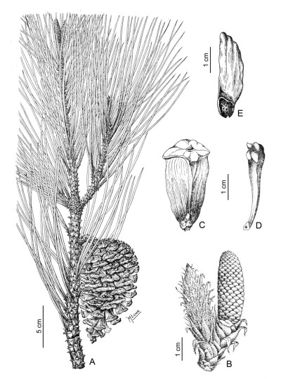 Observaciones: Usos. Excelente forestal por su madera y producción de resina;