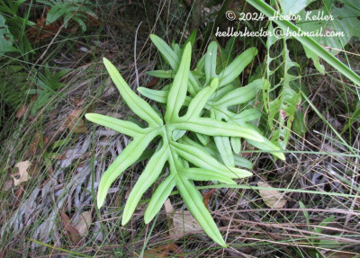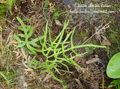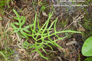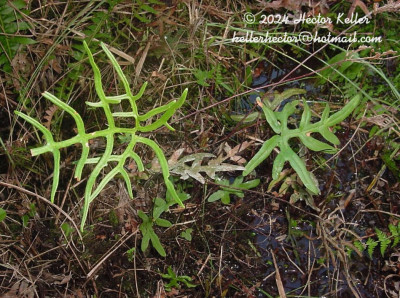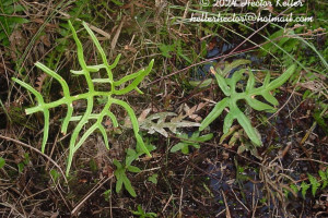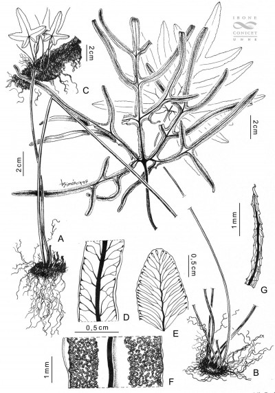 Rizomas rastreros, ca. 5 cm de diámetro, oscuros, escamosos en el ápice; escamas filiformes, hasta de 4 × 0,5 mm, inconspicuamente dentadas, con una banda central castaño-oscurs. Frondes dimorfas; pecíolos teretes, castaños, glabros; pecíolos hasta de 50 cm de largo en las frondes fértiles, castaño oscuros a negruzcos; láminas de contorno pentagonal, 2-pinnatilobado-pinnatisectas, subcoriáceas, margen reflexo, crenado; segmentos lasciniados; costas castaño oscuras, inmersas en la haz y sobresalientes en el envés; venación furcada, anastomosada completamente en los bordes, formando un vena colectora casi continua, sorífera. Pseudoindusio continuo, subterminal. Esporangios en cenosoros. Esporas triletes, subtriangulares a esferoidales en vista polar y superficie crestada.