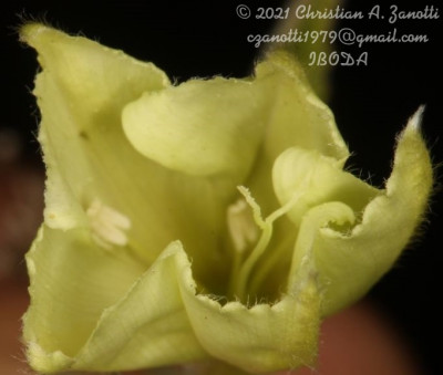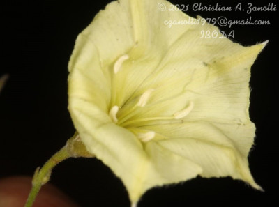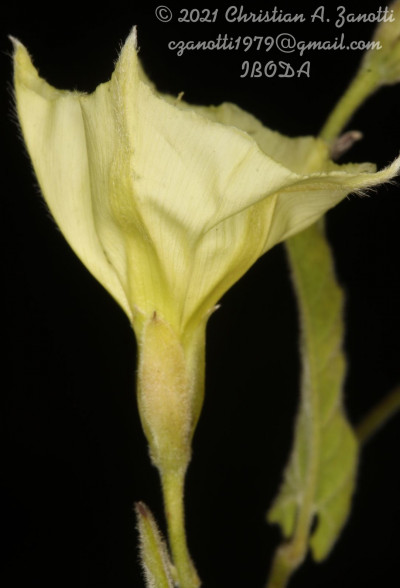 Plantas perennes, volubles o decumbentes; raíz axonomorfa; tallos, pedúnculos y pecíolos laxa a densamente pubescentes, pelos cortos, comúnmente retrorsos. Hojas enteras, por lo común hasta 2-3 veces más largas que anchas, de 1,1-10 × 0,6-5 cm, ovadas, anchamente elípticas a lanceoladas, hastadas o sagitadas, de base cordada y ápice obtuso a agudo y mucronado; borde ondulado, crenado o irregularmente dentado, dientes agudos, más raro láminas lobadas; aurículas convergentes o paralelas, angulosas o 2-3 dentadas, a veces redondeadas; pubescencia densa a esparcida en ambas caras, pelos más o menos adpresos, patentes sobre los nervios del envés. Inflorescencias cimosas, cimas laxas, paucifloras (1-3floras), pedúnculos y pedicelos relativamente largos; brácteas y bractéolas florales lanceoladas hasta de 4,5 mm de largo. Flores con sépalos externos de color castaño-rojizo, elípticos a obovados, de ápice obtuso a trunco, a veces emarginado o agudo, mucronados, de 6,5-10 × 4-6 mm, pubescentes en toda su superficie o sólo en la línea media, bordes ciliados; sépalos internos elípticos u obovados, de 7-10 × 6-7,5 mm, obtusos a agudos, ciliados, mucronados, glabros o pubescentes en la línea media, márgenes hialinos; corola campanuladoinfundibuliforme, cremosa, de 1,6-2,5 cm, con áreas mesopétalas pubescentes en la mitad superior, prolongadas en un mucrón piloso en el limbo, éste levemente 5-angulado; androceo con estambres de ± 1 cm; gineceo con ovario glabro, estilo de 1-1,4 cm y estigmas cilíndricos, muy delgados, a menudo exertos, a veces con pelos caedizos en la base. Cápsulas apiculadas, de 89 mm de diámetro, castaño claras, glabras, Semillas negras de 35 mm, diminutamente tuberculadas o lisas.