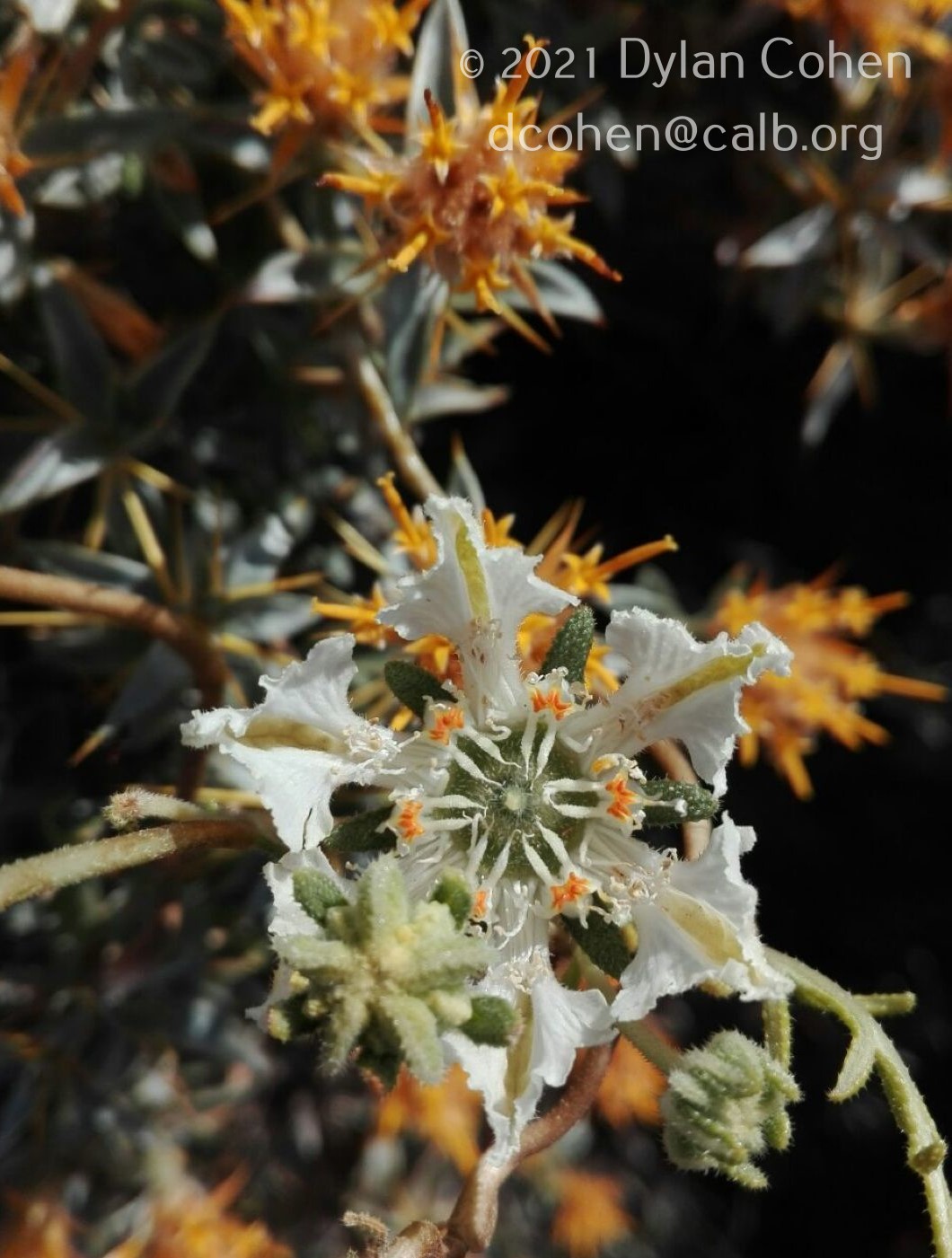 Observaciones: Hemos visto algunos ejemplares de Pinnasa de tallos volubles y corolas blancas procedentes de los departamentos neuquinos de Lácar [alrededores de San Martín de los Andes ej: Denham 450 (SI) Hicken 52 (SI), Ruiz-Leal 3077 (MERL)] y Huiliches (cerca del Lago Paimún, sin testigo), los cuales difieren de Pinnasa volubilis en la forma de las cápsulas maduras (obcónicas en vez de globosas) y las láminas foliares menos ramificadas. Es probable que algunos de estos ejemplares sean los que Crespo & Pérez-Moreau (1981, p. 175) consideraron como posiblemente afines a Loasa argentina (acá sinonimizada con Pinnasa bergii). Nosotros no estamos seguros de sus afinidades, aunque hibridación interespecífica podría estar involucrada (ver también sección de observaciones de P. bergii).