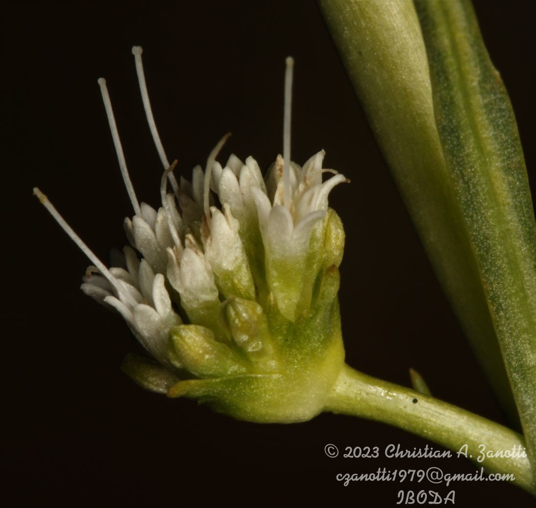 Hierbas geófitas sin ramas laterales. Hojas congestas en la base del tallo (pero no claramente rosuladas), estrechamente lanceoladas o lineares, de 2-6 cm de largo, margen entero, ápice agudo. Cefalodio central largamente pedunculado, no desagregado (excepcionalmente con 1-3 grupos cimosos periféricos sésiles, adosados al involucro). Cefalodios laterales ausentes (no hay ramas laterales). Involucro con base fusionada pateliforme y lóbulos triangulares agudos. Brácteas del receptáculo triangulares a lanceoladas, las más periféricas fusionadas en ambos márgenes basales formando celdas cerradas que encierran un grupo cimoso. Sépalos lanceolados a triangulares, de 1 mm de largo. Tubo estaminal-corolino de 1,5-1,8 mm de largo, tubo corolino de 1,8 mm de largo, lóbulos corolinos lanceolados, de 0,8-0,9 mm de largo. Tubo estaminal de 0,3 mm de largo, filamentos de 0,5 mm de largo, anteras de 1,2 mm de largo, tecas de base agudo-sagitada. Cipselas prismáticas a turbinadas, lisas, de 3-4 mm de largo, con 5 carenas y sépalos lanceolados.