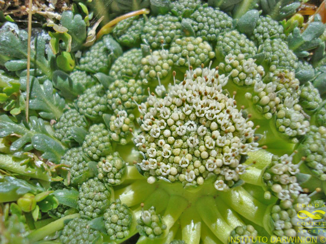 Hierbas hemicriptófitas de 2,5-10 cm de alto × 5-20 cm de diámetro. Hojas rosuladas, espatuladas; pecíolo de 2-3 cm de largo; lámina pinnatilobada, de 1-6 × 1-3 cm, base atenuada, margen entero, ápice redondeado. Cefalodio central sésil, grupos cimosos periféricos desagregados numerosos, sésiles y connados a progresivamente separados, pedunculados e involucelados. Cefalodios laterales sobre ramas laterales escapiformes, gruesas y cortas. Involucro con base fusionada pateliforme o cupuliforme y lóbulos triangulares. Receptáculo hemisférico, volviéndose globoso con la maduración de los frutos. Brácteas del receptáculo libres. Sépalos triangulares, hinchados, de 0,4 mm de alrgo. Tubo estaminal-corolino de 1,52 mm de largo, tubo corolino de 1-1,5 mm de largo, lóbulos corolinos de 1 mm de largo. Tubo estaminal de 0,5 mm de largo, filamentos de 0,5-0,7 mm de largo, anteras oblongas, de 1,2 mm de largo, tecas de base agudo-sagitada. Cipselas prismáticas, de 2-8,5 mm de largo, con 5 carenas lisas, expandidas, esponjosas, y sépalos integrados a las carenas del fruto.