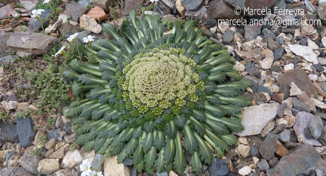 Hierbas hemicriptófitas de 2,5-10 cm de alto × 5-20 cm de diámetro. Hojas rosuladas, espatuladas; pecíolo de 2-3 cm de largo; lámina pinnatilobada, de 1-6 × 1-3 cm, base atenuada, margen entero, ápice redondeado. Cefalodio central sésil, grupos cimosos periféricos desagregados numerosos, sésiles y connados a progresivamente separados, pedunculados e involucelados. Cefalodios laterales sobre ramas laterales escapiformes, gruesas y cortas. Involucro con base fusionada pateliforme o cupuliforme y lóbulos triangulares. Receptáculo hemisférico, volviéndose globoso con la maduración de los frutos. Brácteas del receptáculo libres. Sépalos triangulares, hinchados, de 0,4 mm de alrgo. Tubo estaminal-corolino de 1,52 mm de largo, tubo corolino de 1-1,5 mm de largo, lóbulos corolinos de 1 mm de largo. Tubo estaminal de 0,5 mm de largo, filamentos de 0,5-0,7 mm de largo, anteras oblongas, de 1,2 mm de largo, tecas de base agudo-sagitada. Cipselas prismáticas, de 2-8,5 mm de largo, con 5 carenas lisas, expandidas, esponjosas, y sépalos integrados a las carenas del fruto.