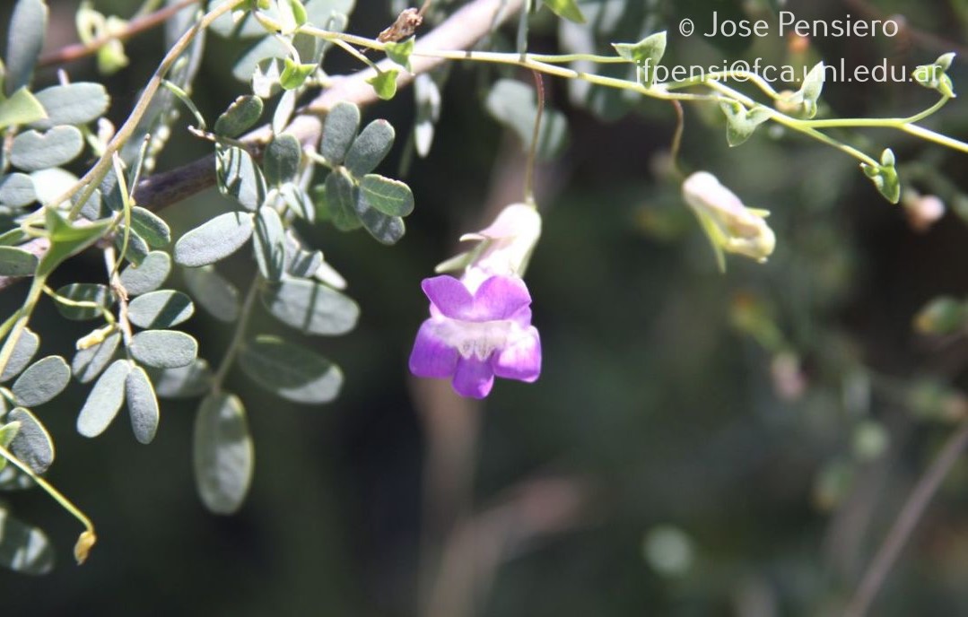 Enredaderas perennes, glabras; tallos flexuosos. Hojas alternas, pecíolos flexuosos y volubles, de 1-2 cm de largo; láminas hastado-triangulares, de 0,5-2 cm de largo, con 5-lobulos mucronados. Flores solitarias, axilares, con pedicelos de 1-1,5 cm de largo. Cáliz glabro con 5 sépalos angostamente ovados, de 1-2 cm de largo, agudos. Corola personada, con tubo de 1-2 cm de largo, ensanchado en la parte superior, giboso en la base, de color violeta, labio superior 2-lobulado, reflejo, ca. 0,5 cm de largo, labio inferior 3-lobulado, de 0,7-0,8 cm de largo, garganta blanquecina, pilosa. Estambres 4, con filamentos de 10-15 mm de largo. Ovario con estilo de 10-14 mm de largo; estigma globoso. Cápsulas globosas, ca. 1 mm de diámetro, dehiscentes, glabras.