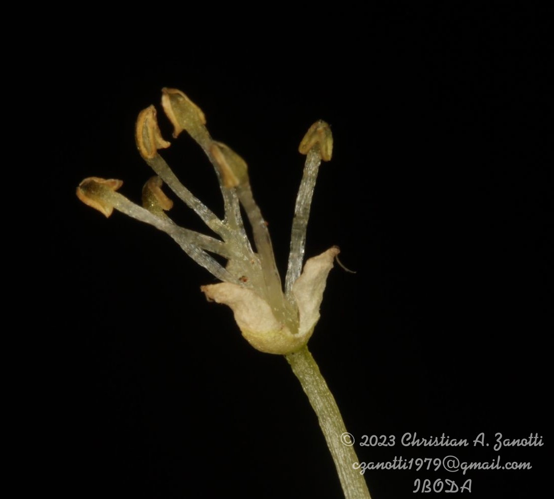 Hierbas monoicas reptantes, ramosas; tallos gráciles, erectos, ascendentes, pubescentes. Hojas pecioladas con estípulas subuladas a triangulares, enteras o fimbriadas, caducas; láminas ovadas a semiorbiculares, de 12-15(-25) × 10-14(-25) mm, pubescentes en ambas caras. Flores solitarias, 3-meras. Flores estaminadas largamente pedunculadas; sépalos 3, soldados en la mitad basal, mucronados, glabros, con 2-3 tricomas hirsutos en el ápice; estambres 6, en 2 ciclos, los interiores bastante más largos, filamentos cortamente pubescentes y soldados en la base. Flores pistiladas de 1,5 mm de largo, cortamente pedunculadas; sépalos 3, ovados, agudos, cóncavos en la base, glabros, carnosos; estilo inconspicuo, estigmas 3, amplios, desplegados, membranáceos, variadamente crenados o lobulados. Fruto una cápsula de 1 mm de diámetro, 3-coca, con tricomas híspidos en su superficie. Semillas subglobosas, oscuras.