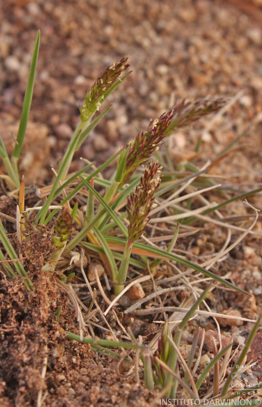 Plantas cespitosas, de (3-)7-25(-70) cm de alto, césped basal notable; cañas glabras, erectas, exertas; vainas glabras o pubescescentes; lígulas de (0,8-)1-2(-4) mm de largo, membranáceas, truncadas, glabras, el borde fimbriado; láminas de 1-11 cm de largo, planas, tiernas, las de la caña florífera glabras, de 1,5-3 mm de ancho, las láminas de las innovaciones generalmente menores de 1 mm de ancho, ápice obtuso, totalmente pilosas o pilosas en los márgenes, pelos blanquecinos. Inflorescencias de 2-20 x 0,5-1,5(-2) cm, subespiciformes, exertas o subincluidas, de contorno lobulado, interrumpidas hacia la base, raquis glabrescente, ramificaciones y pedicelos escabrosos, ramas hasta de 3 cm de largo, adpresas, pluriespiculadas. Glumas subiguales, agudas, de (2,8-)3-4,8(-6) mm de largo, la superior levemente menor, 1-nervias, nervio escabriúsculo, dorso glabro; artejo inferior de la raquilla breve, de 0,15-0,2 mm de largo, articulación de contorno circular; callo con pelos hasta de 0,9 mm de largo; lemma de (2,2-)3-3,5(-4,2) mm de largo, escabrosa, bordes superpuestos, ápice terminado en 4 arístulas escabriúsculas de 0,4-0,7(1-1,2) mm de largo, arista dorsal, escabrosa, retorcida en la base, de 3,5-5,4(-6,2) mm de largo, inserta a 1-1,6 mm de la base; pálea de 1,4-1,9(-2) mm de largo, membranácea hialina, 2-nervia, nervios poco notables, ápice bífido; lodículas 2, de 0,5-0,6 mm de largo, hialinas, agudas; raquilla de 0,6-0,8 mm de largo, escasamente pilosa; flor perfecta, cleistógama; estambres 3, anteras de 0,3-0,4 mm de largo; ovario con dos estilos y estigmas plumosos, breves; cariopsis fusiforme de 1,4-1,5 mm de largo, estilopodio de 0,2-0,4 mm de largo, estigmas persistentes, frecuentemente las anteras adheridas a ellos, surco ventral profundo, hilo oval, punctiforme, embrión breve, endosperma generalmente blando.