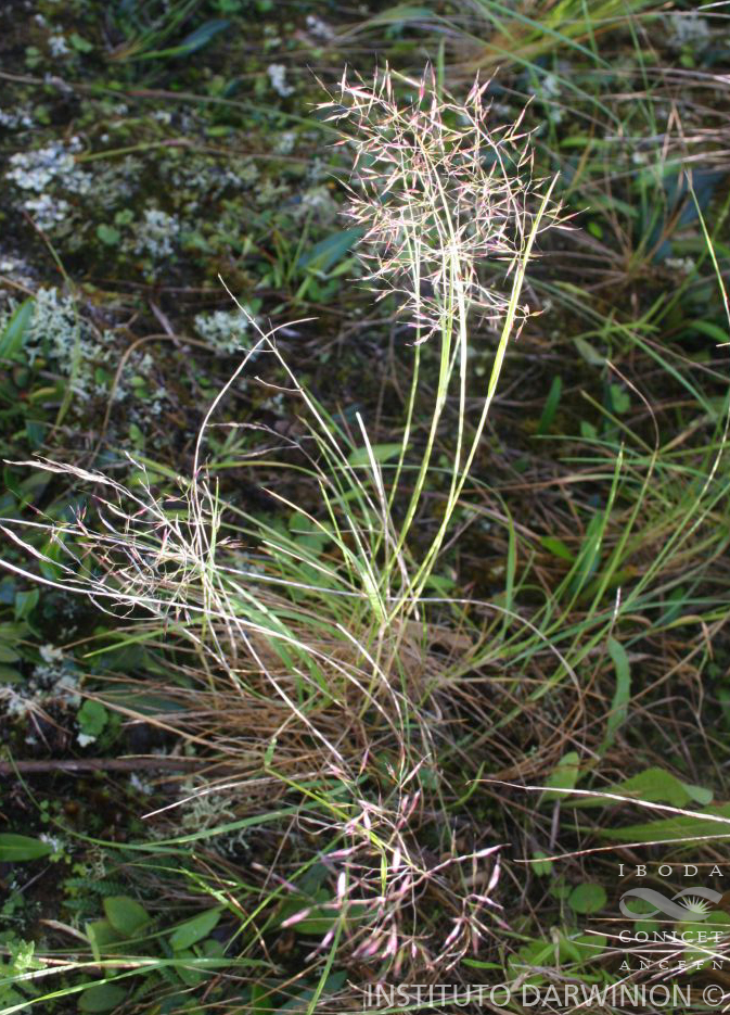 Plantas rizomatosas, rizomas estoloniformes, a veces oblícuos; cañas erectas de 6,5-56 cm de alto, glabras o tomentosas en el tercio superior, generalmente 3-nodes, nudos glabros; hojas formado césped poco menor que las cañas; vainas glabras o vainas de las innovaciones pubérulas y las de las hojas de la caña florífera glabras; lígulas de (0,6-)1-3,5 mm de largo, truncadas o subtrígonas, de ápice obtuso, membranáceas, borde finamente laciniado, lígulas de las innovaciones menores; láminas de 3-20 cm x 1-2 mm, conduplicadas al secarse, ápice navicular, glabras, a veces las láminas de las innovaciones pubérulas o con pelos cortos en la cara adaxial, pulvínulos basales desarrollados. Inflorescencia una panoja de 2-13 cm de largo, laxa, piramidal, exerta o subincluida, raquis glabro, escabriúsculo o hirsuto, ramificaciones verticiladas, erectas o patentes, capiláceas, escabriúsculas o hirsutas, las laterales basales de 1,5-5,5 cm de largo, pedicelos glabros, glabrescentes o hirsutos, patentes, tan largos o mayores que las espiguillas. Glumas la inferior 1-nervia de 4,5-5,7(-6) mm de largo, la superior 1-3-nervia, de (4,1-)5-6 mm de largo, violáceas, nervio medio escabroso; lemma de 4,6-5,5 mm de largo, 5-nervia, escabrosa en el dorso, ápice terminado en 4 arístulas escabriúsculas de 0,5-1,5 mm de largo, arista dorsal de 6,5-8 mm de largo, escabrosa, geniculada, retorcida en la base, inserta a (1-)1,2-2 mm de la base; pálea de 4,1-4,6 mm de largo, membranácea, 2-nervia, nervios escabriúsculos, ápice brevemente 2-dentado; callo breve, redondeado, piloso, pelos de 0,2-0,7 mm de largo, no alcanzando el tercio inferior del antecio; artejo inferior de la raquilla de 0,25-0,3 mm de largo, glabro o piloso en el dorso; raquilla de 1,6-2,4 mm de largo, pilosa, los pelos no alcanzan el ápice de la pálea, lo igualan o lo superan; lodículas 2, de 0,5-0,8 mm de largo, membranáceas, 2-lobuladas, lóbulos agudos, desiguales; estambres 3, anteras violáceas de 1,9-2,5 mm de largo; ovario oboide, estilos breves excéntricos, estigmas plumosos, blanquecinos; cariopsis de 2,8 mm de largo, comprimida lateralmente, surco ventral poco profundo, embrión breve, hilo elíptico, endorsperma seco.