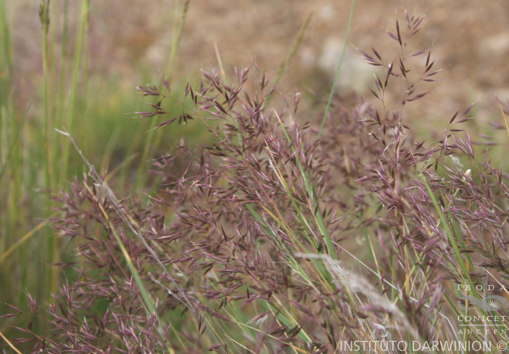 Plantas rizomatosas, rizomas estoloniformes, a veces oblícuos; cañas erectas de 6,5-56 cm de alto, glabras o tomentosas en el tercio superior, generalmente 3-nodes, nudos glabros; hojas formado césped poco menor que las cañas; vainas glabras o vainas de las innovaciones pubérulas y las de las hojas de la caña florífera glabras; lígulas de (0,6-)1-3,5 mm de largo, truncadas o subtrígonas, de ápice obtuso, membranáceas, borde finamente laciniado, lígulas de las innovaciones menores; láminas de 3-20 cm x 1-2 mm, conduplicadas al secarse, ápice navicular, glabras, a veces las láminas de las innovaciones pubérulas o con pelos cortos en la cara adaxial, pulvínulos basales desarrollados. Inflorescencia una panoja de 2-13 cm de largo, laxa, piramidal, exerta o subincluida, raquis glabro, escabriúsculo o hirsuto, ramificaciones verticiladas, erectas o patentes, capiláceas, escabriúsculas o hirsutas, las laterales basales de 1,5-5,5 cm de largo, pedicelos glabros, glabrescentes o hirsutos, patentes, tan largos o mayores que las espiguillas. Glumas la inferior 1-nervia de 4,5-5,7(-6) mm de largo, la superior 1-3-nervia, de (4,1-)5-6 mm de largo, violáceas, nervio medio escabroso; lemma de 4,6-5,5 mm de largo, 5-nervia, escabrosa en el dorso, ápice terminado en 4 arístulas escabriúsculas de 0,5-1,5 mm de largo, arista dorsal de 6,5-8 mm de largo, escabrosa, geniculada, retorcida en la base, inserta a (1-)1,2-2 mm de la base; pálea de 4,1-4,6 mm de largo, membranácea, 2-nervia, nervios escabriúsculos, ápice brevemente 2-dentado; callo breve, redondeado, piloso, pelos de 0,2-0,7 mm de largo, no alcanzando el tercio inferior del antecio; artejo inferior de la raquilla de 0,25-0,3 mm de largo, glabro o piloso en el dorso; raquilla de 1,6-2,4 mm de largo, pilosa, los pelos no alcanzan el ápice de la pálea, lo igualan o lo superan; lodículas 2, de 0,5-0,8 mm de largo, membranáceas, 2-lobuladas, lóbulos agudos, desiguales; estambres 3, anteras violáceas de 1,9-2,5 mm de largo; ovario oboide, estilos breves excéntricos, estigmas plumosos, blanquecinos; cariopsis de 2,8 mm de largo, comprimida lateralmente, surco ventral poco profundo, embrión breve, hilo elíptico, endorsperma seco.