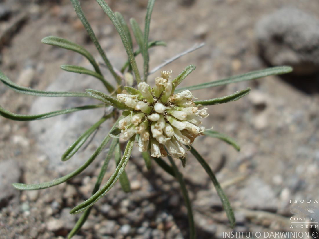 Hierbas geófitas rizomatosas, con rizomas muy delgados, lineares, y brotes aéreos erectos, cespitosos de 1-3-(8) cm de alto. Hojas numerosas, laxamente rosuladas, enteras, linear a estrechamente cuneadas, conduplicadas, base atenuada en un pecíolo largo y delgado, ápice obtuso. Tirsoide condensado sésil o sobre un pedúnculo corto y folioso. Grupos cimosos periféricos plurifloros, bráctea tectriz libre, profilos fusionados en un involucelo; grupos cimosos internos 2-3-floros, cada uno encerrado en una celda formada por la base fusionada de su bráctea tectriz, profilos libres o fusionados a la bráctea tectriz. Involucro diferenciado alrededor de las flores solitarias, con base fusionada campanulada y lóbulos triangulares o lanceolados, desiguales. Flor central terminal bien desarrollada. Sépalos dentiformes, diminutos, de 0,5 mm de largo. Tubo estaminalcorolino de 0,8 mm de largo, tubo corolino 3-3,2 mm, lóbulos corolinos, triangulares a oblongos, de 1-1,2 mm de largo. Tubo estaminal de 1,6-2,2 mm de largo; filamentos reducidos o nulos; anteras sésiles, de 1,2 mm de largo, tecas de base agudo-sagitada. Cipselas prismáticas, rugosas, con 5 carenas; sépalos suborbiculares, membranáceos; apículo diminuto.