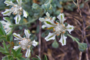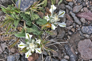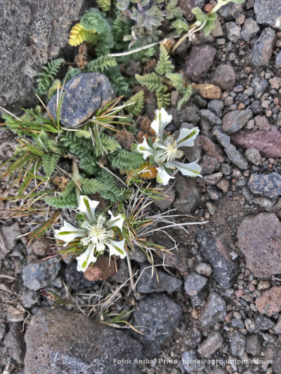 Planta cespitosa, muy pubescente, con tricomas escabrosos de base ensanchada y tricomas gloquidiados; tallos hasta de 13 cm, ascendentes o postrados, los tricomas escabrosos con frecuencia retrorsos. Hojas opuestas, pubescentes; pecíolos de 3-20 mm de largo, algo amplexicaules; láminas ovadas o elípticas, de 5-15 × 2,5-7 mm, pinnatisectas, segmentos subelípticos, con menos frecuencia suborbiculares, a veces con algún lóbulo, cara abaxial con predominio de pelos gloquidiados. Inflorescencias monocasios paucifloros. Flores 5-meras; cáliz con segmentos generalmente subtriangulares de ápice obtuso, de 4-5 × 2-2,5 mm en la base, pubescentes, cara adaxial con predominio de pelos escabrosos, cara abaxial glabrescente en el tercio inferior; pétalos de 7,5-10,5 × 6-8 mm y 2-4 mm de profundidad, anchamente espatulados, muy cóncavos, laciniados, crespos, amarillos, cara externa pubescente y cara interna glabra o glabrescente; escamas nectaríferas subrectangulares, de 5,5-6,5 × 2-3 mm, curvas en perfil, ápice incurvo, algo carnoso, con lóbulos indistintos, ya sean 2 a veces emarginados o con 4, los centrales mayores, emarginados o no, mitad superior de la cara ventral cóncava, mitad inferior muy cóncava hasta casi sacciforme, con fina pubescencia de pelos escabrosos en el dorso y en el tercio medio 3 quillas ligeramente aladas, estrechas,que se extienden debajo de la inserción de sendos apéndices filiformes de 2-2,5 mm de largo, expandidos apicalmente en una laminilla obovada, subrómbica o elíptica, de 0,5-1 mm de largo; estaminodios 2 por escama nectarífera, de 5-7 mm de largo, en forma de “L”, doblados poco más abajo de la mitad, parte inferior subrectangular, pubescente, parte superior subfusiforme, papilosa, y con una prolongación abruptamente adelgazada, filiforme, por encima de la punta de la escama; estambres 16-19 por fascículo; filamentos de 5-8 mm de largo; anteras elipsoides, ca. 0,6 mm de largo; ovario ca. 3 × 3,5-5,5 mm de diámetro en la parte superior, obcónico, placentas 3, óvulos numerosos; estilo de 3-5 mm de largo, 3-fido, a veces con una ligera torsión, pubescencia de ovario y estilo con predominio de pelos escabrosos. Fruto maduro y semillas no vistos.