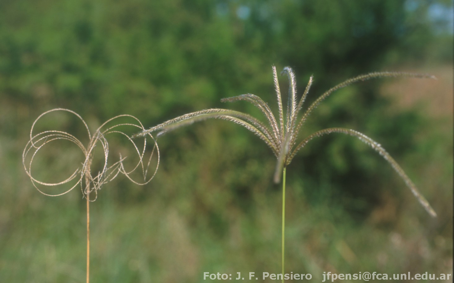 Hierbas perennes de 15-60 cm de alto, cespitosas o estoloníferas; cañas erectas, ramificadas, glabras, plurinodes; vainas glabras; lígulas de 0,3-0,5 mm de largo, reducidas a un borde ciliado o conspicuamente pilosas; láminas de 4-20 cm x 3-5 mm, planas, a veces convolutas, glabras o pilosas, subuladas. Inflorescencias formadas por 2-5(-8) racimos de 3-10 cm de largo, gráciles o engrosados, dispuestos en un verticilo apical, erectos o poco flexuosos. Espiguillas 3-4-floras, imbricadas; glumas 2, 1-nervias, quilla escabrosa, márgenes membranáceos, la inferior de 1,3-1,7(-2,2) mm de largo, aguda, la superior de 2-2,5(-2,8-3,5) x 0,2-0,4 mm, menor que los antecios, a veces mucronada; lemma inferior fértil de 1,8-3(-3,5) x 0,9-1,1 mm, comprimida lateralmente, margen y quilla ciliados en toda su longitud, pelos hasta de 3 mm de largo, divergentes, aristulada o con arista subapical de 0,9-2,7(-3,5) mm de largo; pálea de 2,1 x 0,7 mm, anchamente elíptica, nervios escabrosos, dorso glabro a veces pubérulo; lodículas 2, soldadas a la base de la pálea; estambres 3, anteras de 0,5-0,7 mm de largo, cleistógamas; antecios superiores estériles 2-3, el inferior de 1,3-1,8 x 0,8-1,8 mm, truncado, glabro, arista subapical de 0,9-1,4 mm de largo; lemma del antecio superior similar pero menor, de 0,8-1,1 x 0,9-1,2 mm, mútica; cariopsis de 1,3-1,5 x 0,7 mm, ovoide, subtrígona, castaña, sin surco notable; mácula embrional alcanza la ½ de la longitud del fruto; hilo oval.