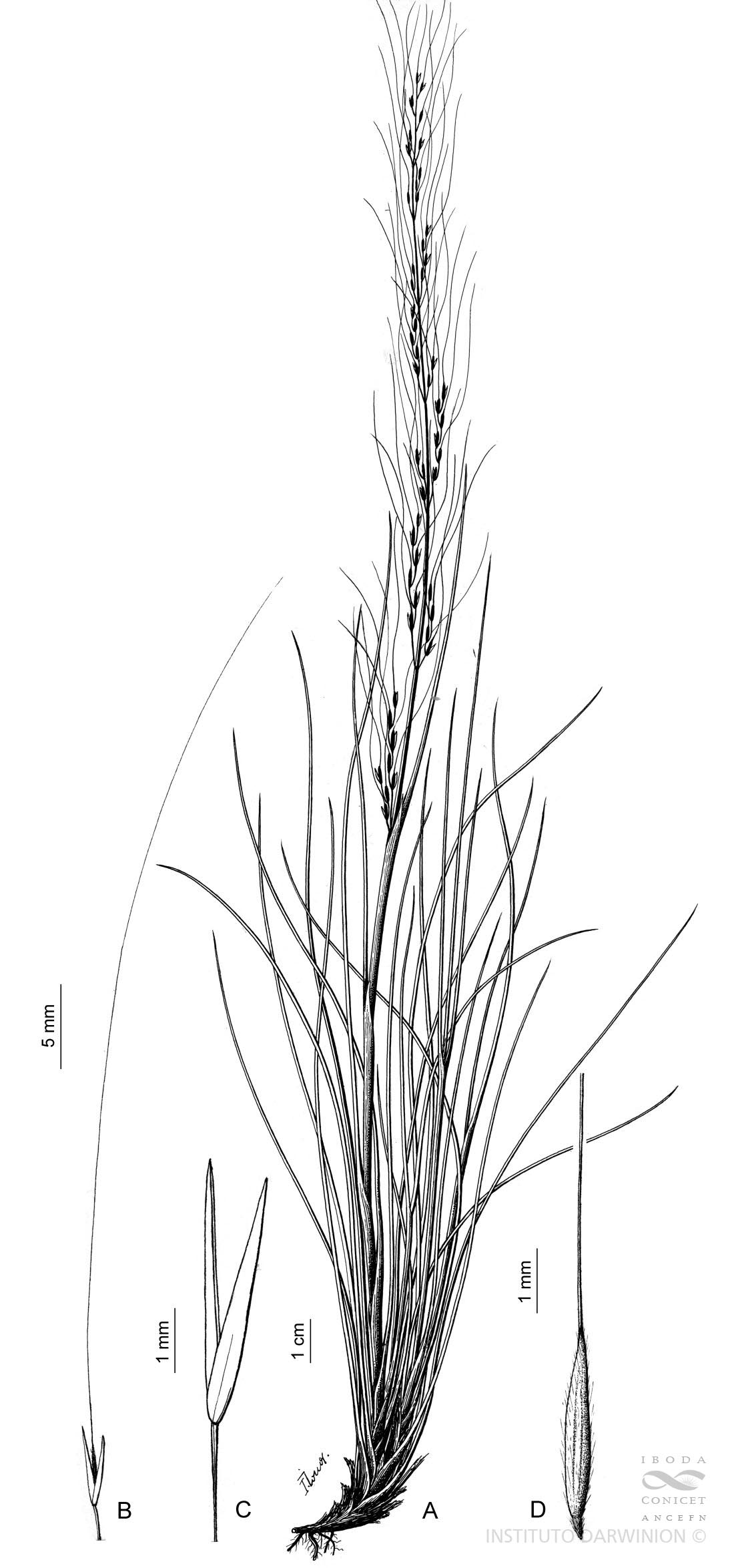 Stipa bomanii Hauman Anales Mus. Nac. Buenos Aires 29: 397, f. 1. 1917 TIPO. Argentina. Jujuy. Dpto. Susques: Territorio de los Andes, 2 Jun 1903, 3700 m s.m., E. Boman sn. (holotipo, no localizado; isotipo, BAA-Colecc. Typus 2977!).