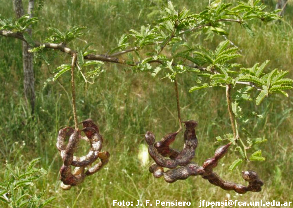 Árbol hasta de 8 m alt., ramas basales algo fastigiadas. Espinas de hasta 2,5 cm. Hojas 1-3-yugadas, pinnas 1-6 cm, 10-30-yugadas; folíolos 2-7,5 x 0,8-1,8 mm. Racimos espiciformes, mayores que las hojas, de 5-13 cm. Legumbres falcadas a anulares, comprimida lateralmente, submoniliforme a moniliforme, de 7-17 cm; epicarpo amarillo pajizo, con manchas violáceas; mesocarpo algo dulce.