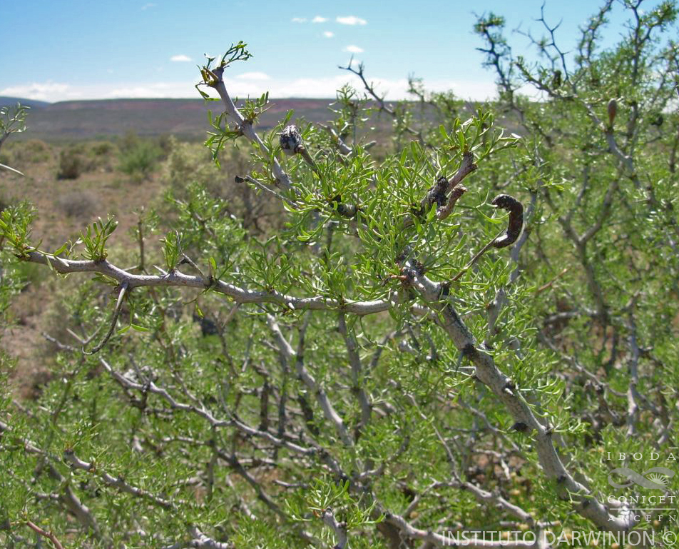 Arbusto espinoso similar a la var. precedente, diferenciándose por la legumbre delga¬da, falcada a anular pero solo de 0,5 cm diám., contraída entre las semillas y con seg¬mentos más alargados y mesocarpo muy fino; semillas de 4,5-7 mm.
