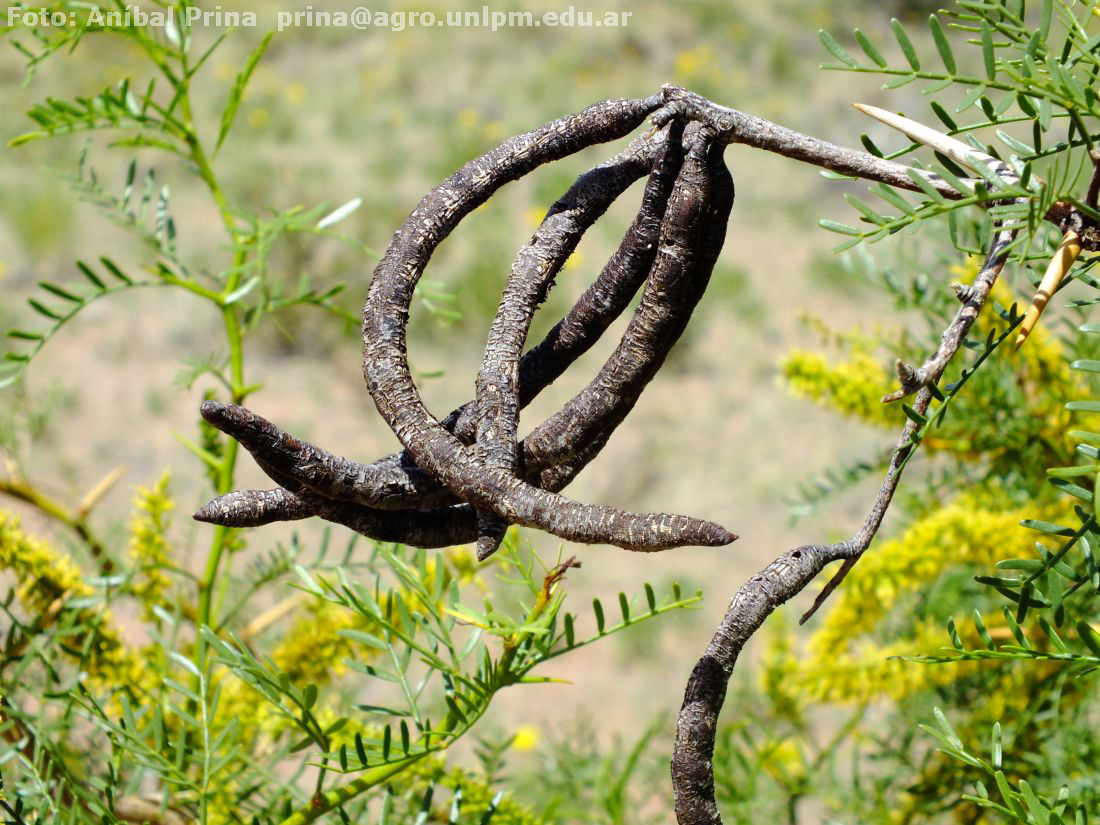Arbusto de 0,6-3 m, espinoso, deciduo, con espinas axilares solitarias y raíces gemí¬paras horizontales. Hojas grandes con pecíolos de 0,5-2,5 cm, pinna (1 por hoja) de 2,5-6 cm, 3-9-yugadas, folíolos de 6-12 x 1-2 mm, lineares, anchos, glabros, distantes, los inferiores alternos y el último a menudo abortado. Racimos hasta 8 cm. Fruto de 5-17 x 1-1,5 cm, casi derecho a falcado, ancho, grueso, a menudo comprimido, segmentos del endocarpo subcuadrados a oblicuamente ovoides; semillas de 7 mm, ovoides.