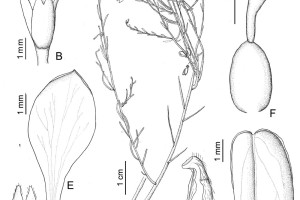 Arbustos de hasta 40 cm de alto, compactos; tallos robustos, ramificados en la parte media, terminados en espinas, glabros o pubérulos con tricomas cortos y curvos. Hojas alternas, sésiles; láminas lanceoladas a lineares, de 3-10 × 0,8-1 mm, ápice agudo, glabras o pubérulas. Inflorescencias en racimos de 1 a 5 flores; brácteas orbiculares a lanceoladas, de 1-1,2 × 0,8-1 mm, ápice agudo u obtuso, ciliadas o con tricomas escasos en la cara abaxial, generalmente persistentes en la antesis; bractéolas orbiculares a lanceoladas, de 1 × 0,8 mm, ápice agudo, ciliadas, generalmente persistentes. Flores de 6-7 mm de largo; pedicelos ca. 2 mm de largo, glabros; cáliz blanco a violáceo; sépalos externos ciliados; sépalo externo inferior ovado, de 2-2,2 × 1-1,5 mm, cóncavo, ápice agudo; sépalos externos superiores elípticos a ovados, de 1,8-2 × 1-1,5 mm, ápice agudo a obtuso, connados (excepcionalmente libres); sépalos internos “alas” elípticos a espatulados, de 4-5 × 2-2,5 mm, unguiculados, simétricos o levemente asimétricos, ápice obtuso o agudo, glabros; corola blanca a violácea; quilla de 4-5 mm de largo, cuña de 1-2 mm de largo, cresta con 28-30 lóbulos; pétalos laterales oblongos, de 3-5 × 1 mm, ápice obtuso, fusionados con la vaina estaminal a través de 1/4 de su margen, con manchas violáceas en el ápice, glabros, pubescentes en la porción media adaxial; estambres 8, vaina estaminal de 2-2,5 mm de largo, glabra, porción libre de los filamentos estaminales mayor que el largo de las anteras, ca. 0,8 mm de largo, anteras poricidas; ovario elipsoide, de 1-1,5 × 0,7 mm, simétrico, glabro; estilo geniculado, ca. 2 mm de largo, área estigmática con el lóbulo estéril levemente agudo, glabro, márgenes parcialmente cubriendo al lóbulo fértil. Fruto una cápsula elipsoide, de 4-6 × 2-2,5 mm, simétrica, margen levemente alado, glabra. Semillas cilíndricas, de 4-5 × 1 mm, pubescentes, rostro muy desarrollado; elaiosomas lineares, de 1/2 a 3/4 del largo de la semilla, libres, a veces portando un pequeño arilo en la base de la semilla.