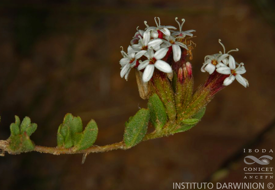 Hierbas perennes, de 10-20 cm de alto, con tallos ascendentes o decumbentes, hojosos hasta la inflorescencia, con pubescencia algo crespa. Hojas sésiles, elíptico-lanceoladas u ovadas, de 1-2 × 0,4- 1 cm, redondeadas o cuneiformes en la base, agudas o semiobtusas en el ápice, pubescentes en ambas caras y glandulosopunteadas en la inferior. Capítulos sésiles o apenas pedunculados, dispuestos en glomérulos apicales agrupados en dicasios. Involucro de 7-8 mm de alto; filarios agudos o casi obtusos, con pelos curvos. Flores con corolas de 7-8 mm de largo blancas o rosadas, pubescentes. Papus isomorfo formado por 13-15 aristas casi tan largas como la corola.