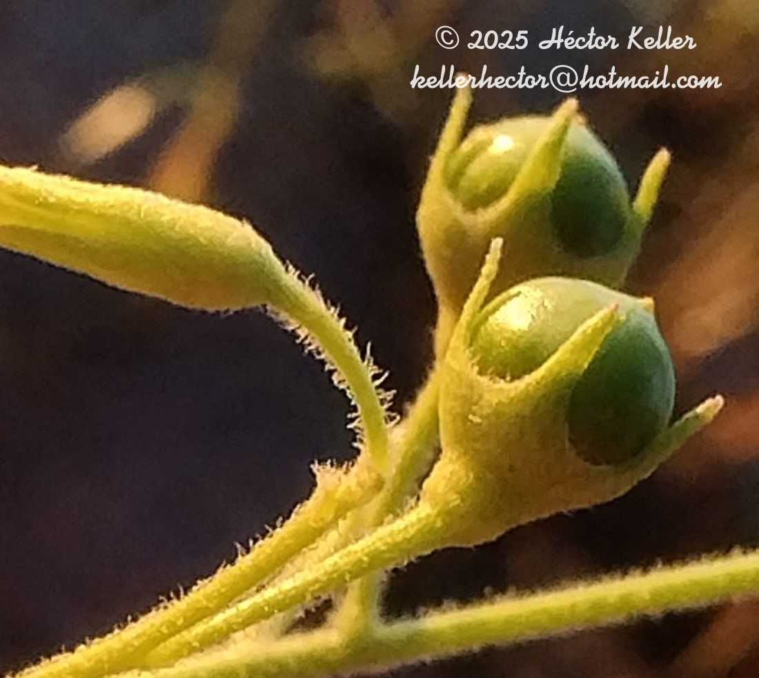 Subarbustos trepadores, volubles, hasta de 3 m de largo. Hojas con pecíolos de 5-15 mm; láminas ovadas a ovado-elípticas, de 5-10 × 2,5-5 cm, desde glabrescentes a pubescentes en las hojas jóvenes. Pedicelos pilosos. Cáliz campanulado, de 3,5-5 mm, lóbulos linear-lanceolados, de 1,5-2,5 mm, pilosos en ambas caras; corola amarilla o verde clara, de 24-30(-35) mm, glabrescente en la cara externa y pubescente en la interna, lóbulos medios dentiformes, curvos, pequeños, hasta de 0,5 mm, lóbulos laterales contiguos triangulares, de 4-6 mm, papilosos en el ápice; estambres fértiles 2, exertos, adnatos en el tercio superior del tubo corolino, filamentos laminares en su parte superior y allí pubescentes, estaminodios 3; estilo exerto. Cápsula globosa, de 4-7 mm de diámetro; pedicelos fructíferos de 3-5 mm, no articulados; semillas no más de 20, de color castaño claro, de 0,80-1 mm.