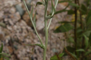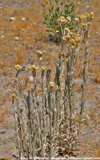 Hierbas anuales, de 30-70 cm de alto; tallos erectos, simples o ramosos en la parte superior, tomentosos, hojosos hasta la inflorescencia. Hojas lineares o linear-lanceoladas, 3,5-8 cm × 2,7-6(-9) mm, apenas ensanchadas y decurrentes en la base, agudo-mucronadas y atenuadas en el ápice; hojas inferiores lineares a linear-lanceoladas, discoloras, glanduloso-pubescentes en la haz y más o menos densamente tomentosas en el envés. Capítulos muy numerosos, dispuestos en glomérulos, reunidos a su vez en cimas corimbiformes. Involucro anchamente acampanado, de 3-5 × 3-6 mm; filarios, de color pajizo, los exteriores ovado-elípticos, ápice agudo a subobtuso, los interiores oblongos a oblongo-obovados, ápice agudo a redondeado en el ápice. Flores marginales muy numerosas ca. 88, corolas ca. 2,3 mm de largo; flores del centro pocas, 4-7, corolas de 2,2 mm de largo. Aquenios glabros, ca. 0,7 mm de largo, glabros, marcadamente papilosos. Papus ca. 2,3 mm de largo.