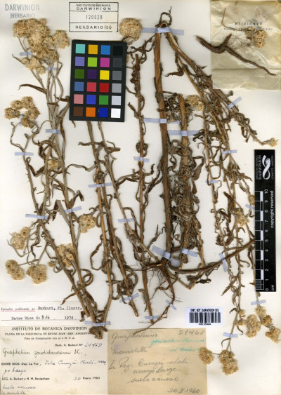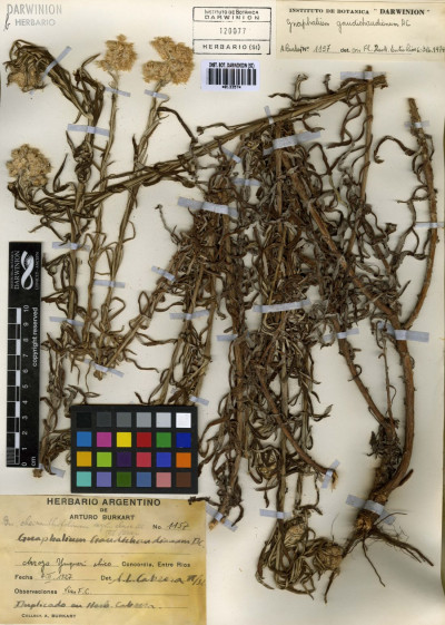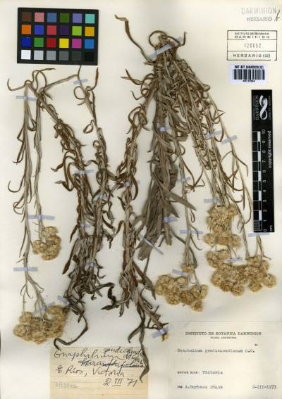 Observaciones: Nombres vulgares. «Bálsamo alemán», «caá guazú», «marcela», «marcelita», «vira-vira’i» (Freire, 1998; Freire et al., 2006).