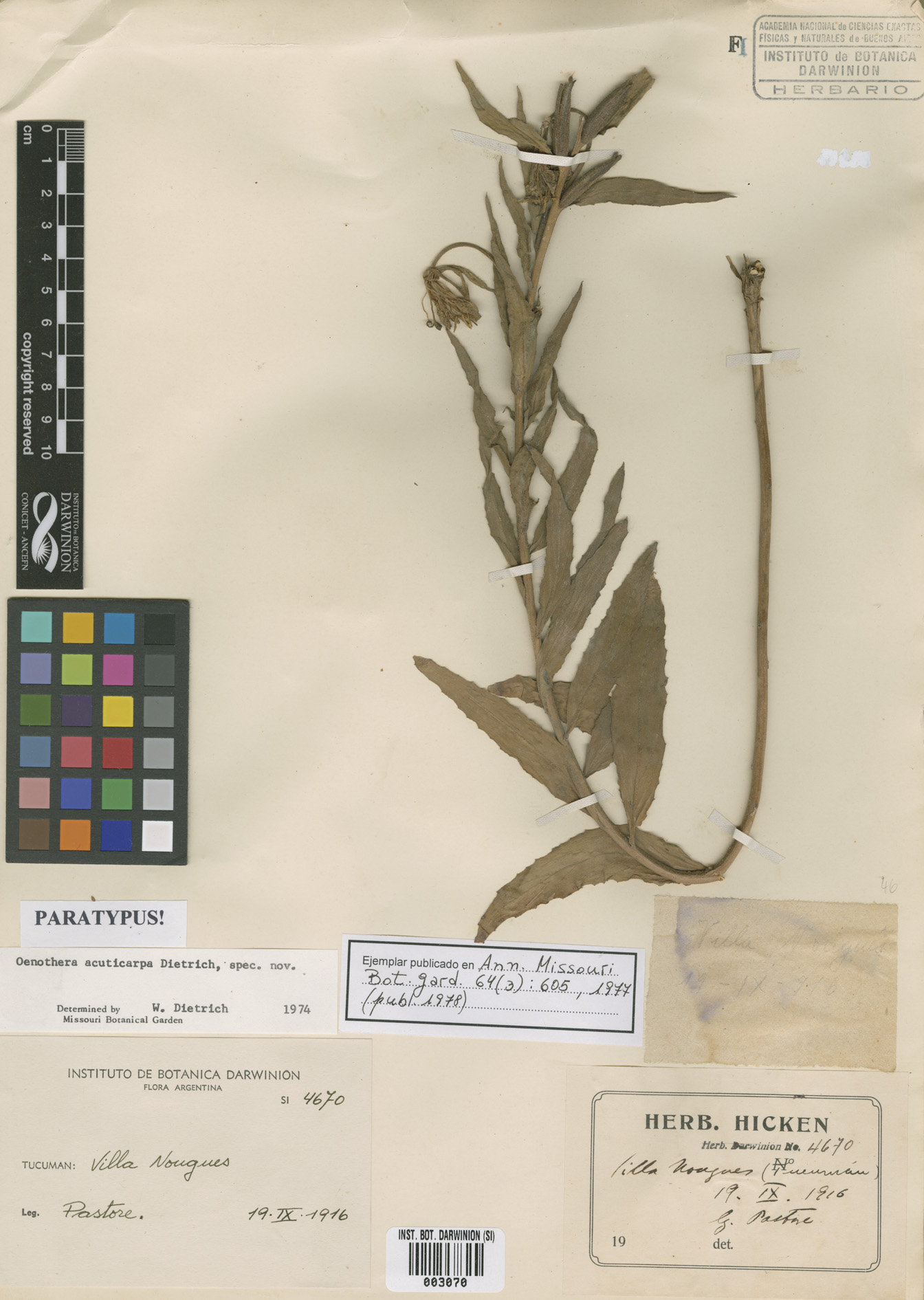 Oenothera tucumanensis W. Dietr. Ann. Missouri Bot. Gard. 64(3): 606. 1977[1978]