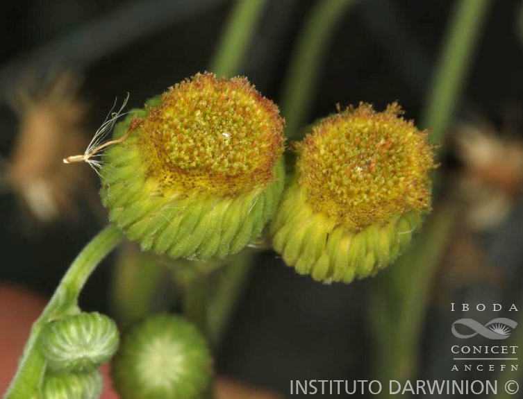 Hierbas bienales o perennes, hasta de 1,50 m de alto; raíces fasciculadas; tallos únicos, simples, subescapiformes, laxamente hojosos, cortamente estrigosos. Hojas estrigosas en ambas caras, las inferiores rosuladas, obovadas, de 5-21 cm × 8-30 mm, largamente atenuadas en la base, ápice obtuso o sub-obtuso, margen crenado o lobado (profundamente serrado), las superiores oblongas, de 1-5 cm × 3-5 mm, base recta, ápice subagudo, margen entero o crenado en el tercio superior, de menor tamaño que las inferiores. Capítulos 3 a ca. 15 por eje, ca. 10 × 10 mm, pedunculados a subsésiles, dispuestos en inflorescencias secundarias corimbiformes densas. Involucro hemisférico con filarios gradualmente menores, dispuestos en 2 ó 3 series, linearovados, de 4-6,5 × 0,5-0,7 mm, agudos, estrigosos. Flores marginales en 5 ó 6 series, con corola filiforme, de 5-6 mm de largo, igual o apenas más larga que los filarios, con limbo no desarrollado, ápice dentado; flores del centro pocas, con corola tubuloso-campanulada, de 4,5-4,7 mm de largo. Aquenios de1,1- 1,6 × ca. 0,5 mm, laxamente seríceos. Papus de 4,4-5,3 mm de largo.