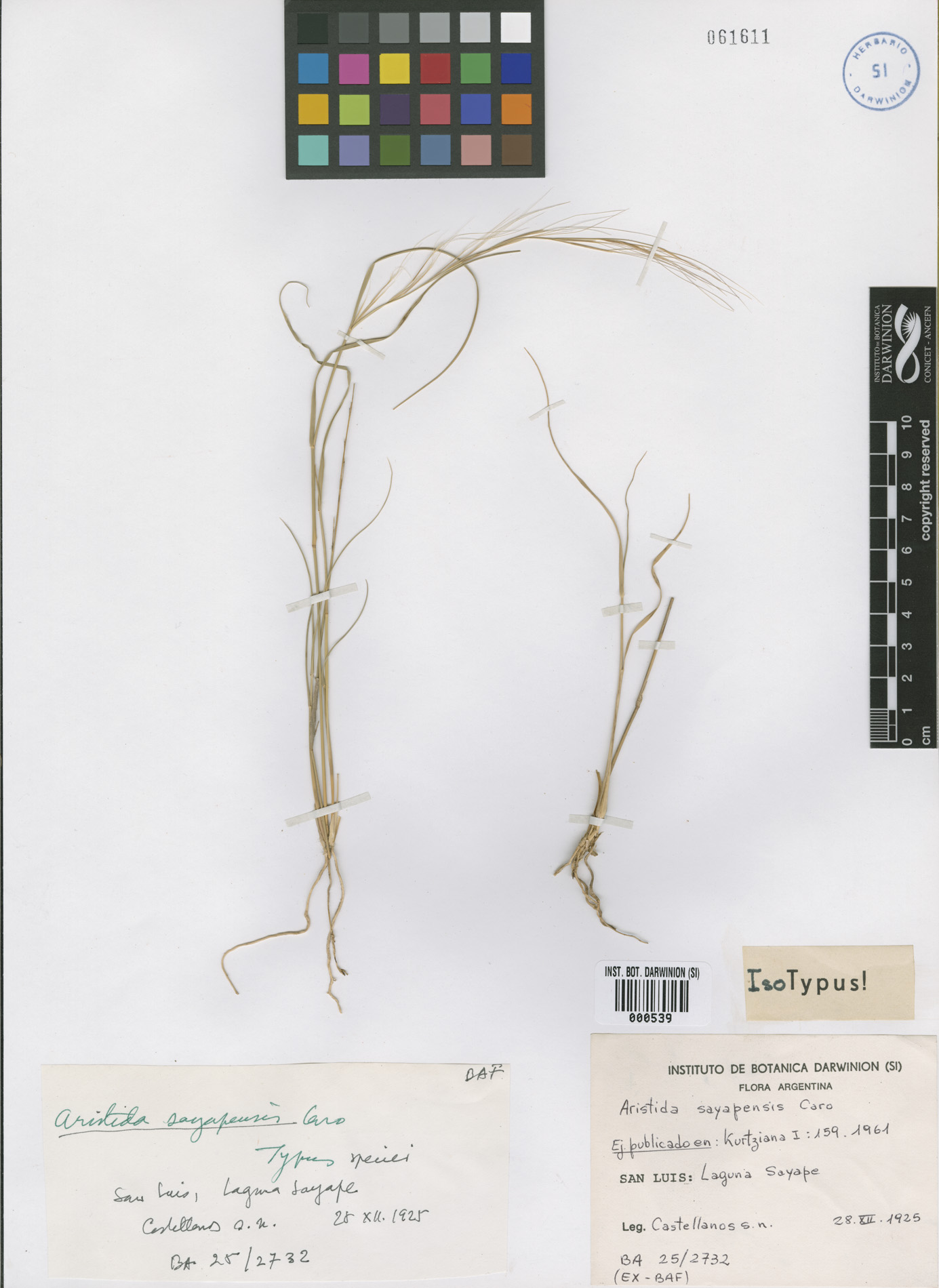 Material Tipo: Argentina. San Luis. Laguna Sayape, 28 Dic 1925, Castellanos 25/2732 (holotipo, BAF)