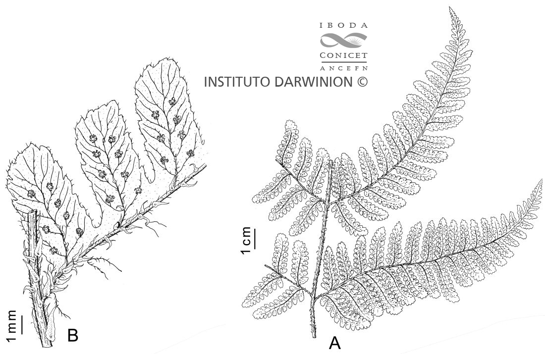 Observaciones: Megalastrum adenopteris es cercana a M.