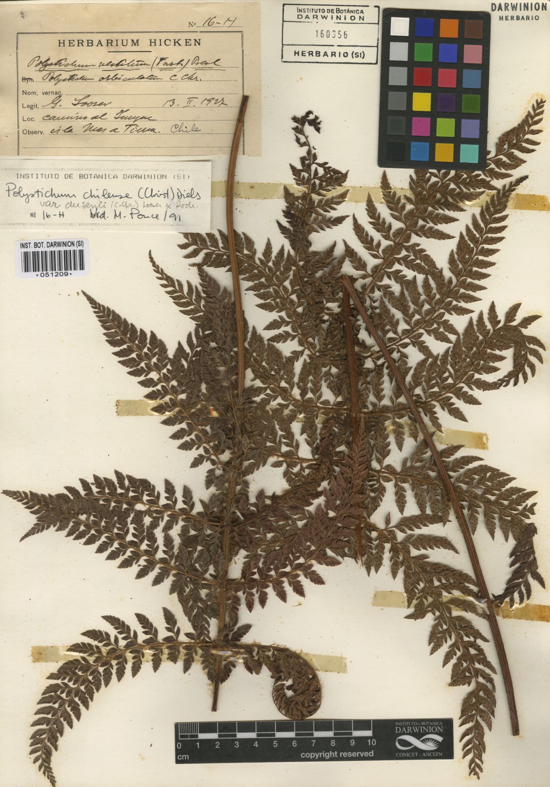 Polystichum chilense (H. Christ) Diels var. dusenii (C. Chr.) Looser ex R. Rodr. var. dusenii (C. Chr.) Looser ex R. Rodr. Gayana, Bot. 44(1-4): 48. 1987