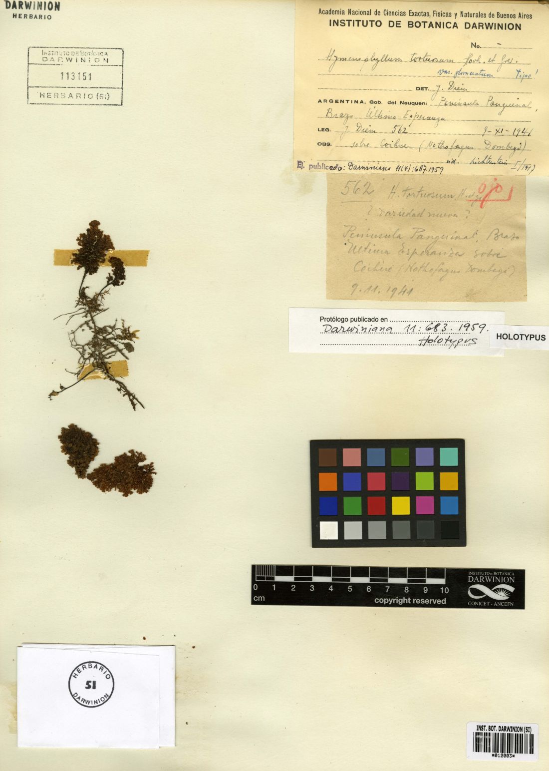 Tipo de Hymenophyllum tortuosum Hook. & Grev. var.glomeratum Diem & J.S. Licht.