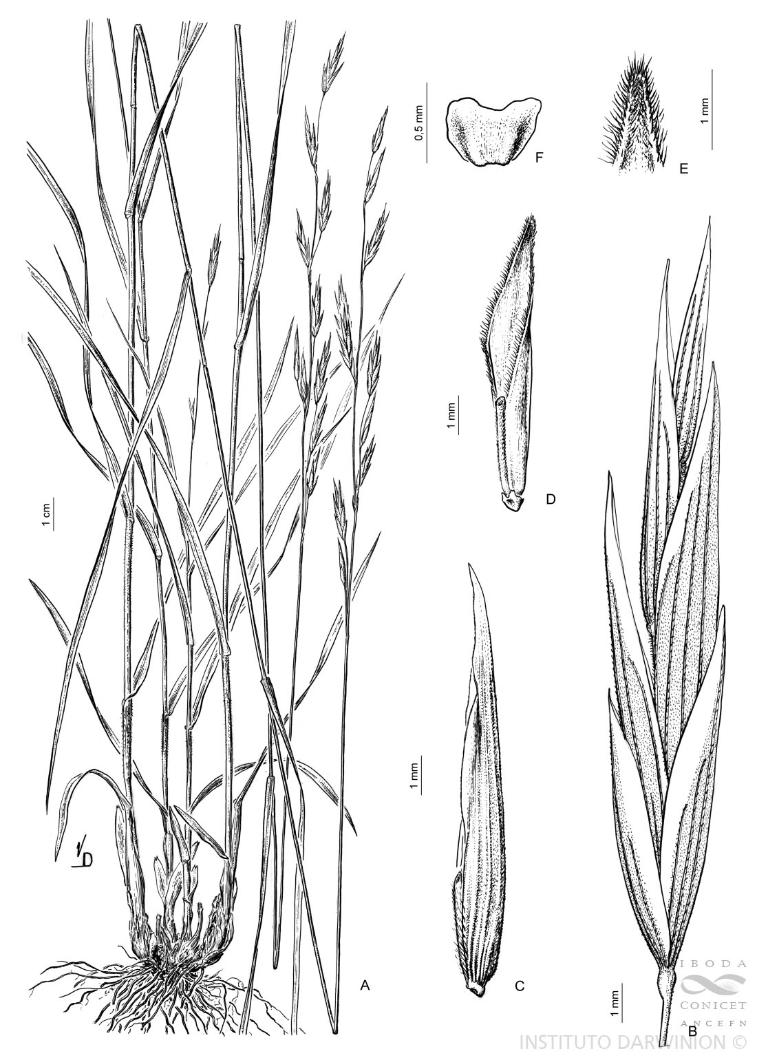 Observaciones: Esta especie se distingue de las restantes especies de Melica que crecen en la Argentina por tener espiguillas con articulación por arriba de las glumas y por los pedicelos rígidos y rectos.