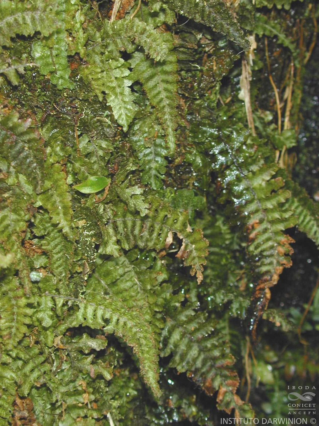 Rizomas rastreros o suberectos, cilíndricos, ca. 1,5 mm de diámetro, con ramificaciones cortas y formando matas compactas, cubiertos de numerosos pelos simples, pluricelulares, de ápice largamente atenuado, pardo violáceos; cara ventral con raíces rígidas con numerosos pelos absorbentes. Frondes muy aproximadas, hasta de 15 cm de largo; pecíolos gráciles, flexuosos, acanalados, de 1- 4 cm de largo, con pelos simples, blanquecinos; láminas linear-lanceoladas a oval-lanceoladas, de ápice y base atenuados, membranáceas, verde claras, translúcidas, profundamente pinnatipartidas, epi e hipofilo glabros; raquis acanalados, pilosos, alados, flexuosos; segmentos subopuestos, los inferiores decreciendo hasta reducirse a lóbulos escamosos, los medianos imbricados, linearlanceolados, hasta de 7 × 18 mm, margen crenado-ondulado, los superiores concrescentes entre sí; venas pinnadas, libres, dicótomas, 1 o 2 veces furcadas, pilosas en ambas superficies, con pelos simples, pluricelulares, aguzados. Soros 1-6, incluidos en el ápice de las pinnas, obcónicos; indusios pilosos, de apertura circular; receptáculos exertos; esporangios sésiles.