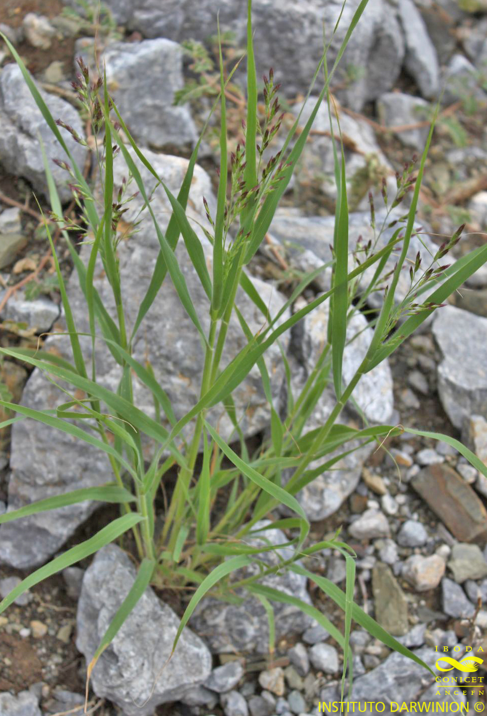 Plantas de 30-50 cm de alto; vainas pilosas, más cortas o más largas que sus entrenudos,; lígulas de 1 mm de largo; láminas de 5-20 cm x 4-6 mm. Inflorescencia de 6-20 cm de largo. Glumas de 4,5-5 mm de largo; lemma de 3-4 mm de largo; pálea de 2,5-3 mm de largo; cariopsis oblonga de 1-1,3 mm de largo.