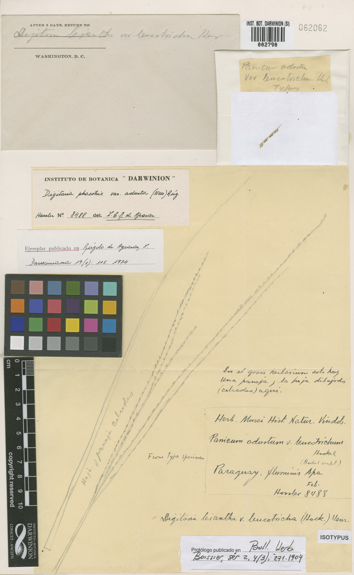 Digitaria leiantha (Hack.) Parodi var. leucotricha (Hack.) Henrard var. leucotricha (Hack.) Henrard Meded. Rijks-Herb. 61: 2. 1930