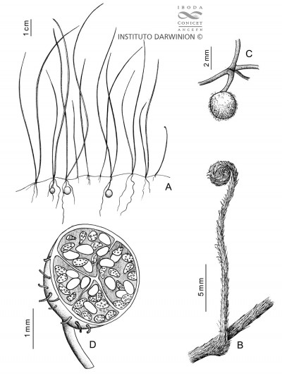 Plantas terrestres, palustres. Rizomas largamente rastreros, muy ramificados y parcialmente enterrados, con raíces únicamente en los nudos. Frondes 2 o 4 por nudo, de prefoliación circinada, filiformes, cilíndricas, de 2-6 cm de largo, glabras o glabrescentes, con algunos pelos 2-3-celulares, especialmente en su ápice. Angiosoros axilares, cortamente pedicelados, de 3-3,5 mm de diámetro, pilosos, con pelos septados, apiculados, 4-loculares; microsporangios 70-80 y megasporangios 20-25 por cavidad.