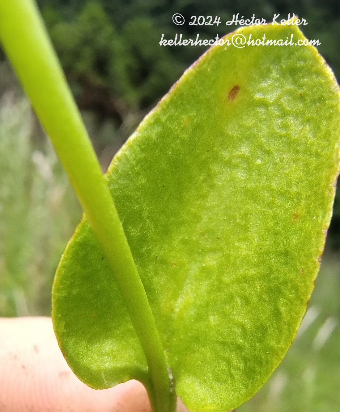 Plantas terrestres. Rizomas cilíndricos, toruloides, de 3-6 mm de diámetro y hasta de 3 cm de largo, con raíces fibrosas, gemíferas, horizontales a subdescendentes cuando vivas, simples, carnosas, de poco más de 1 mm de diámetro y 8-10 cm de largo al producir las yemas. Frondes hasta de 8 cm de largo; pecíolos semiteretes, surcados adaxialmente; láminas subcrasas, de 2,5-6,5 × 2-3,5 cm, ovado-angostas a suborbiculares; venación reticulada doble con venillas frecuentemente inclusas; aréolas de la parte media de la lámina hasta de 1 cm de largo, subisodiamétricas, fusiformes o romboideas, de 7 × 3 mm, ensanchándose hacia la periferia, con aréolas simples en los bordes. Pedúnculos del esporóforo robustos, cilíndricos, cerca de 1,5 mm de diámetro, de 5-13 cm de largo. Angiostromas amarillentos cuando las plantas están vivas, de (1-)2,5-3 cm de largo, notoriamente más gruesos que el pedúnculo, surcados en el medio de las dos hileras de esporangios, surco cercano a los 0,5 mm de ancho. Esporangios de 1,5 × 2 mm, en 11 a 14 pares; apículo conspicuo, deltoide, de 2,5 ×1 mm.
