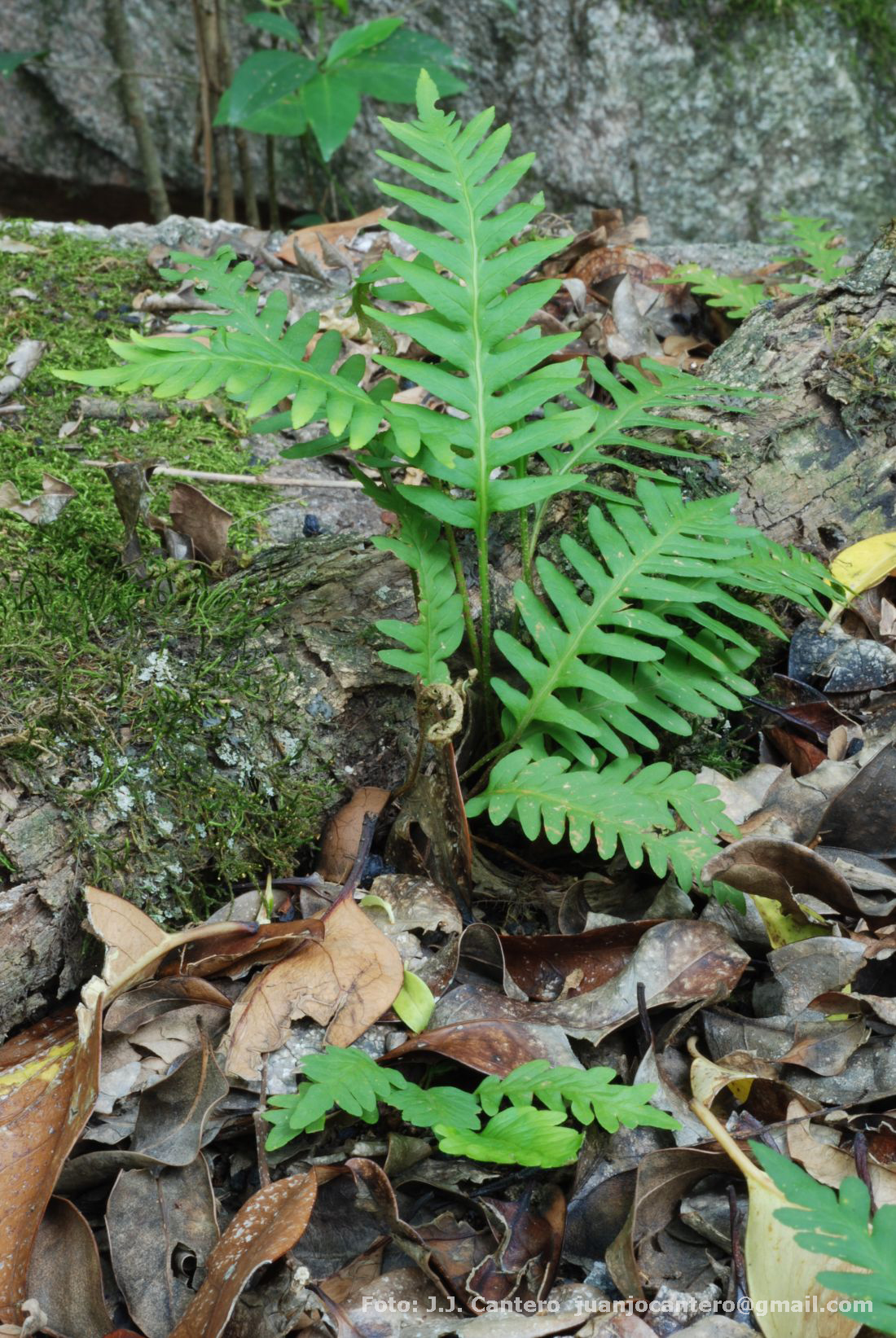 Plantas saxícolas. Rizomas rastreros, de 1,5-2,5 mm de diámetro, con escamas basipeltadas, ovadas a deltoideo-ovadas, de 2,5-3,5 mm de largo, largamente acuminadas, margen irregularmente dentado, castaño rojizas, brillantes, discoloras. Frondes moderadamente distanciadas a aproximadas; pecíolos de 6-8(-12) cm de largo, escamosos a glabrescentes, con 2 aletas laterales en la cara dorsal; láminas pinnatífidas, ovadas a ovado-lanceoladas, de 11-13 × 3-4 cm, coriáceo-carnosas; segmentos hasta 12 pares, alternos, linear-oblongos, de 32 × 7 mm, con margen entero a levemente crenado en el ápice, no cartilaginoso, ápice redondeado, dispuestos en ángulo de 45º los basales y 30º los apicales, generalmente distanciados; segmentos basales iguales o algo menores que los siguientes; raquis oscuro a negruzco; cara adaxial glabra, cara abaxial con escamas esparcidas, ovadas, de 1,2-1,7 mm de largo, agudas, con margen dentado, a veces dientes 2- papilados, basipeltados, concolores; venación inmersa, poco visible, venas laterales determinando un ángulo de 30-45º con el nervio medio del segmento, bifurcadas, con la rama basal a veces dicótoma. Soros confluentes a la madurez, terminales, sobre venillas libres, circulares, ca. 2 mm de diámetro. Esporangios con anillo 14- articulado. Esporas verrugosas, de 68-74 µm de diámetro ecuatorial.
