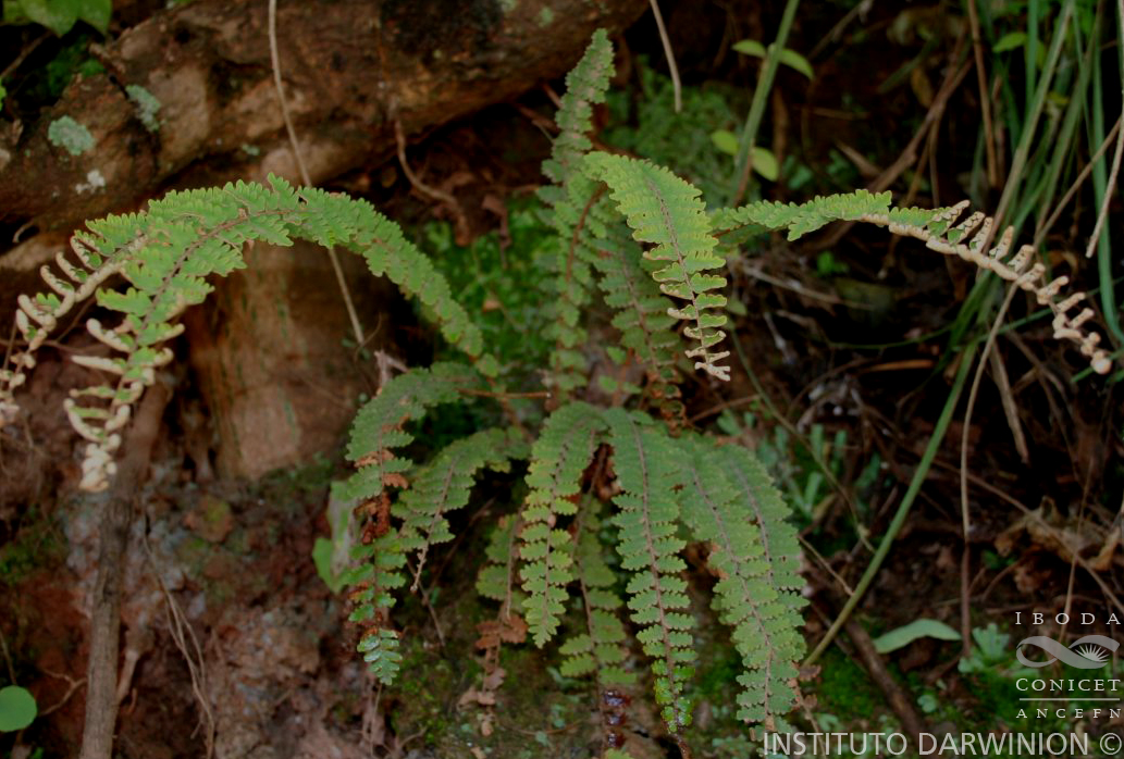 Rizomas cortamente rastreros, con escamas levemente bicolores, denticuladas o ciliadas, sinuosas. Frondes de 15-60 cm de largo, erectas y a veces péndulas, aproximadas; pecíolos breves, ca. 1/5 del largo de la fronde, escamosos; láminas de contorno linear, pinnado-pinnatífidas; raquis teretes, escamosos; pinnas brevemente pecioluladas, elípticas a ovado-triangulares, subenteras a lobuladas, de 8-20 mm de largo, cara adaxial con escamas estrelladas, blanquecinas, esparcidas, a glabrescente, cara abaxial con escamas castaño claras en varias capas, desde ovado-lanceoladas, fimbriadas a estrelladas en las capas internas y con pelos glandulares 2-3-celulares. Esporangios en la porción terminal de las venillas. Esporas 32 en cada esporangio.