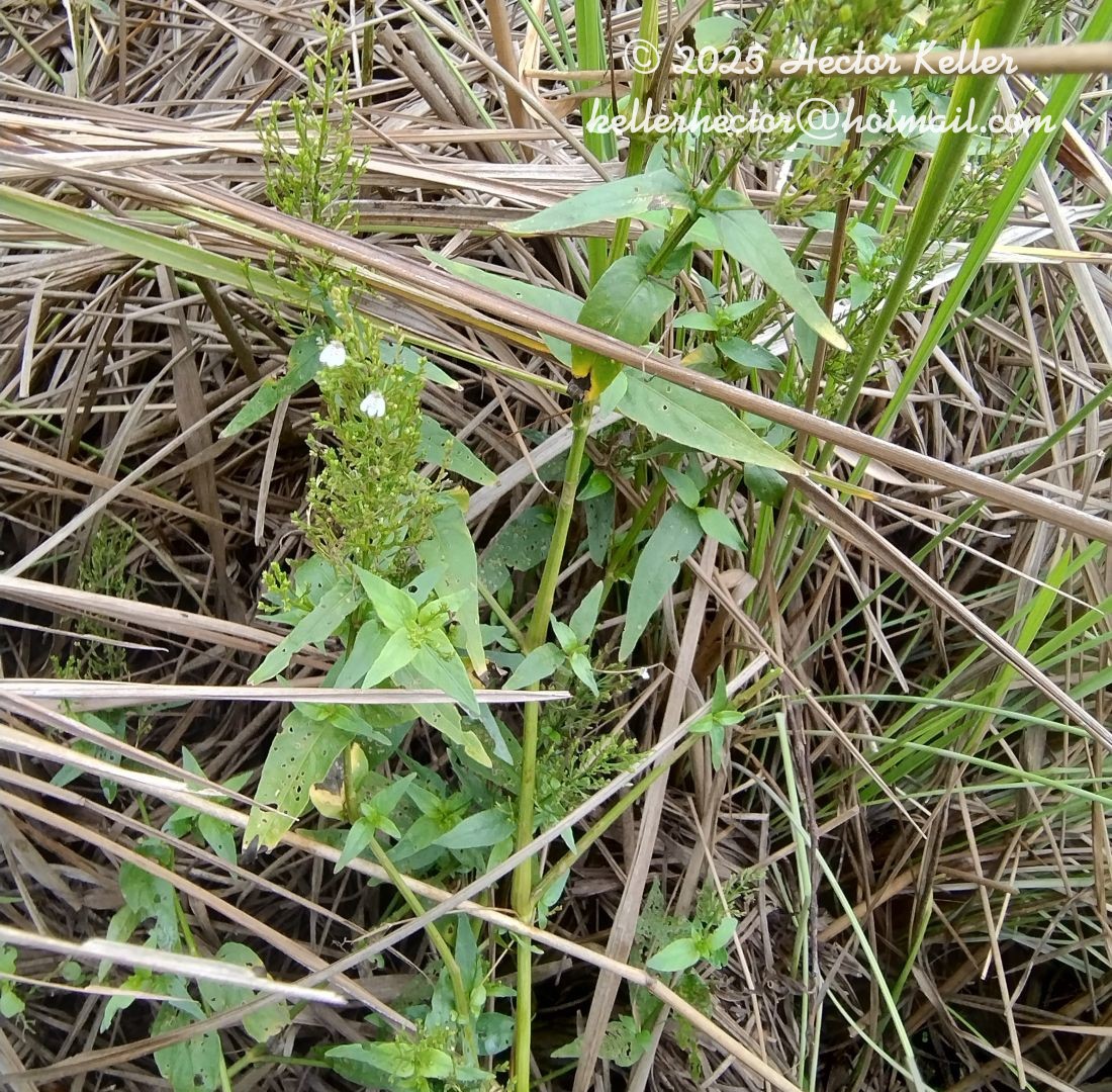 Hierbas perennes, con largos rizomas horizontales provistos de raíces adventicias en los nudos; tallos erectos de 30-80 cm de alto, cilíndricos, frágiles, glabros o muy levemente pubérulos. Hojas opuestas, sésiles, subsésiles o cortamente pecioladas, angostamente ovadas, oblongas o lanceoladas, de 4-8(-15) × (0,8-)1-2 cm, redondeadas, cordadas o cuneadas en la base, frecuentemente decurrentes sobre el pecíolo, agudas, levemente discoloras, glabras o pubérulas. Flores muy pequeñas dispuestas en espigas secundifloras laxas y delicadas que se agrupan formando seudoverticilos en inflorescencias paniculiformes laxas, terminales o axilares, con los ejes filiformes, glabros o levemente pubérulos, y con algunos pelos glandulares; brácteas axilantes de las flores lanceoladas, de 0,8-1,2 mm de largo, generalmente glabras; bractéolas algo más pequeñas; cáliz profundamente 5-partido, con los segmentos lanceolados, de 1-2,5 × menos de 0,5 mm, agudos, glabros o levemente glanduloso-pubérulos; corola blanca, lilacina o violácea, de 3-6 mm de largo, glabrescente, con el tubo ca. 2 mm de largo, la garganta ca. 1 mm de diámetro, los labios ca. 2,5 mm de largo, el posterior emarginado, el anterior 3-lobado, reticulado-rugoso en la fauce, con las marcas moradas, los lóbulos ca. 1 × 1 mm; estambres con filamentos ca. 2 mm de largo, anteras con las tecas situadas a distinta altura, divergentes, ca. 0,4 mm de largo, la inferior algo menor, separadas por el conectivo. Fruto una cápsula pubérula de 3-4(-7) mm de largo, con el tercio inferior sólido y lateralmente comprimido, la porción superior engrosada, de contorno oblongo. Semillas 4, orbiculares, ca. 1 mm de diámetro, aplanadas, diminutamente verrugosas o pusticuladas, pardas; retináculos pequeños.