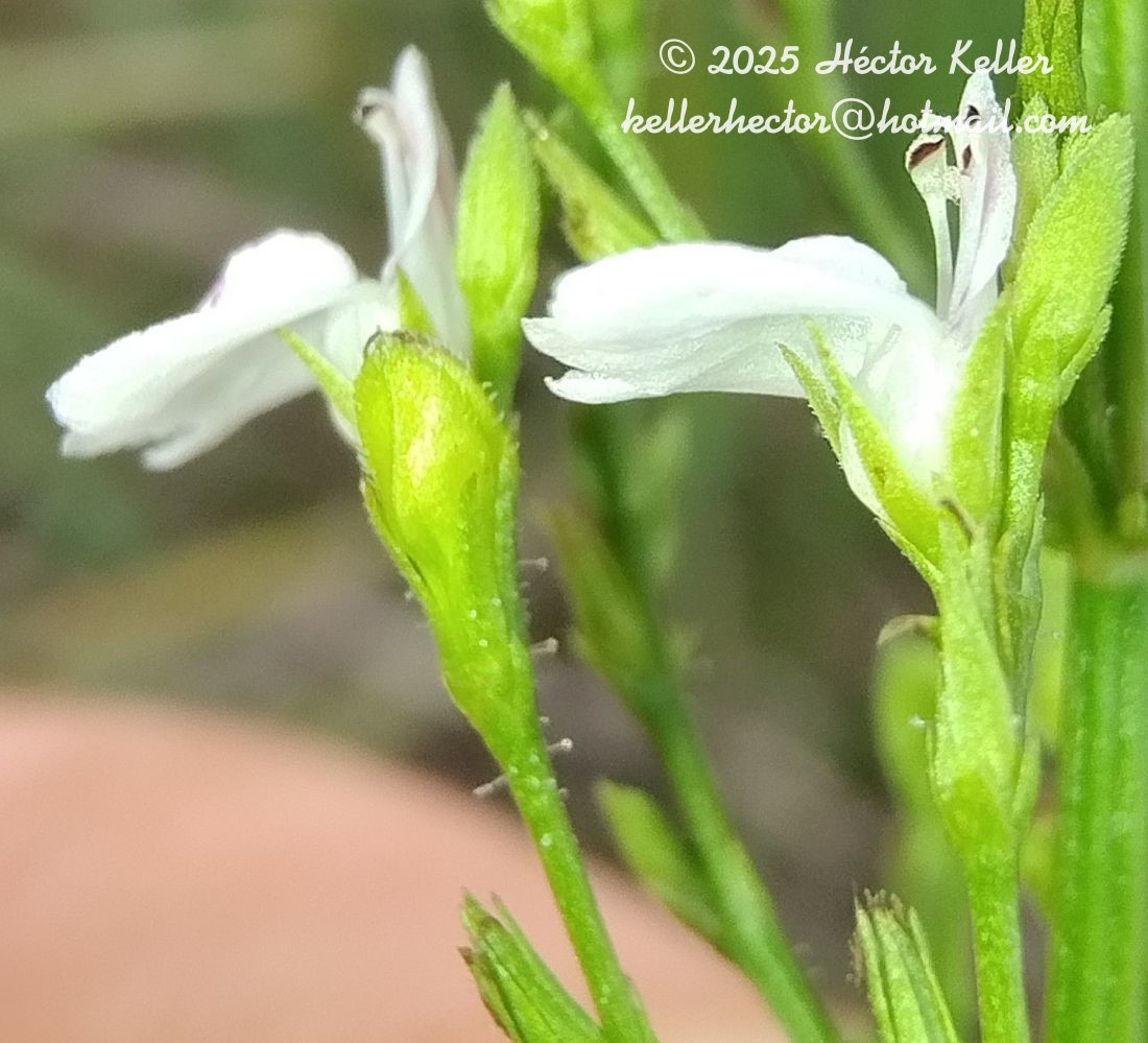 Hierbas perennes, con largos rizomas horizontales provistos de raíces adventicias en los nudos; tallos erectos de 30-80 cm de alto, cilíndricos, frágiles, glabros o muy levemente pubérulos. Hojas opuestas, sésiles, subsésiles o cortamente pecioladas, angostamente ovadas, oblongas o lanceoladas, de 4-8(-15) × (0,8-)1-2 cm, redondeadas, cordadas o cuneadas en la base, frecuentemente decurrentes sobre el pecíolo, agudas, levemente discoloras, glabras o pubérulas. Flores muy pequeñas dispuestas en espigas secundifloras laxas y delicadas que se agrupan formando seudoverticilos en inflorescencias paniculiformes laxas, terminales o axilares, con los ejes filiformes, glabros o levemente pubérulos, y con algunos pelos glandulares; brácteas axilantes de las flores lanceoladas, de 0,8-1,2 mm de largo, generalmente glabras; bractéolas algo más pequeñas; cáliz profundamente 5-partido, con los segmentos lanceolados, de 1-2,5 × menos de 0,5 mm, agudos, glabros o levemente glanduloso-pubérulos; corola blanca, lilacina o violácea, de 3-6 mm de largo, glabrescente, con el tubo ca. 2 mm de largo, la garganta ca. 1 mm de diámetro, los labios ca. 2,5 mm de largo, el posterior emarginado, el anterior 3-lobado, reticulado-rugoso en la fauce, con las marcas moradas, los lóbulos ca. 1 × 1 mm; estambres con filamentos ca. 2 mm de largo, anteras con las tecas situadas a distinta altura, divergentes, ca. 0,4 mm de largo, la inferior algo menor, separadas por el conectivo. Fruto una cápsula pubérula de 3-4(-7) mm de largo, con el tercio inferior sólido y lateralmente comprimido, la porción superior engrosada, de contorno oblongo. Semillas 4, orbiculares, ca. 1 mm de diámetro, aplanadas, diminutamente verrugosas o pusticuladas, pardas; retináculos pequeños.