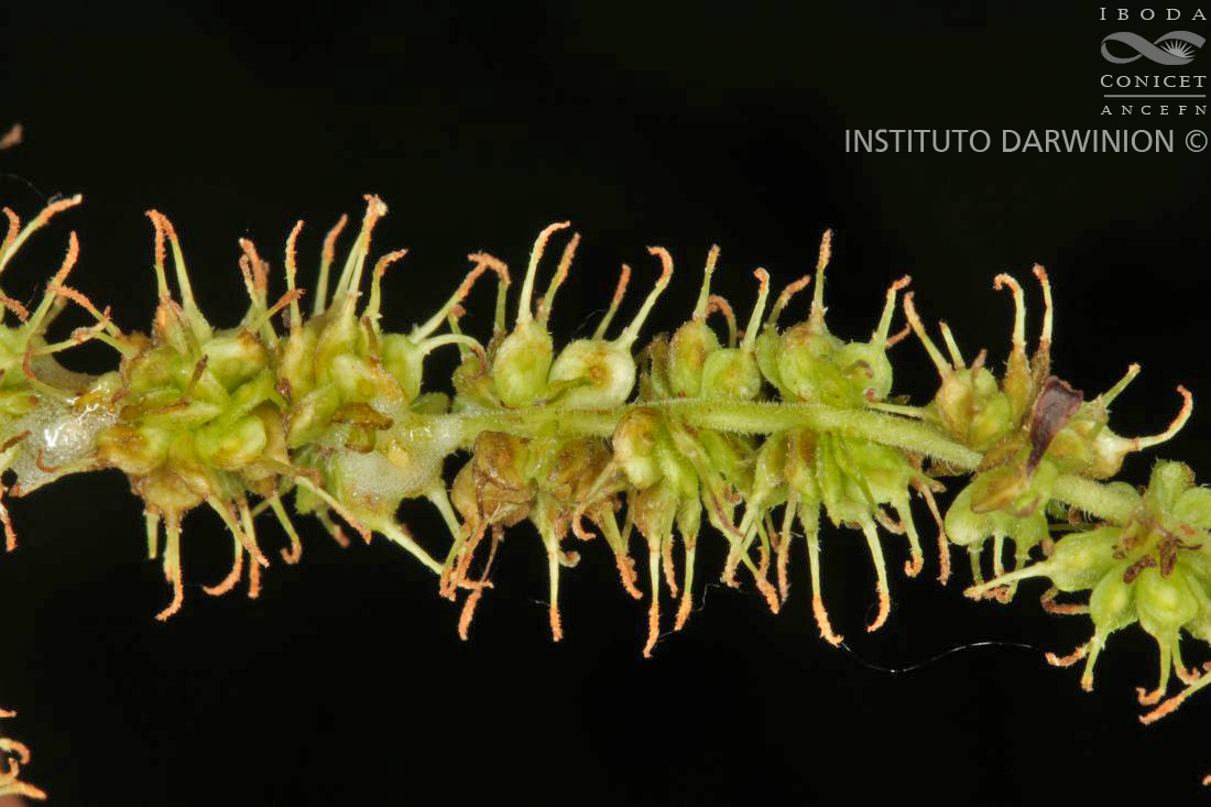 Sufrútices dioicos, hasta de 6 m de alto. Hojas opuestas; lámina de 6-25 × 3,5-16 cm, base obtusa, ápice acuminado, margen crenado o aserrado con dientes romos, cara adaxial pubescente, con cistolitos puntiformes, cara abaxial subglabra. Inflorescencias amentiformes. Fruto un aquenio elipsoidal u obovoide.