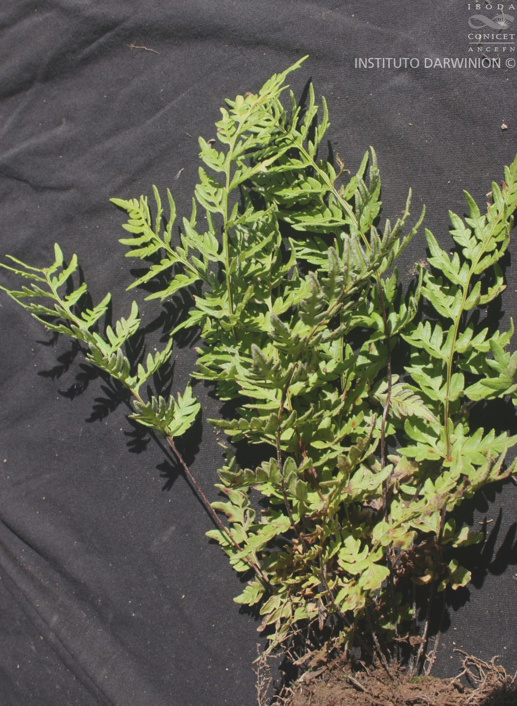 Rizomas decumbentes a cortamente rastreros, con escamas bicolores, castaño negruzcas, margen hialino, ápice ciliado. Frondes aproximadas, de 10-30 cm de largo; pecíolos semiteretes, surcados adaxialmente, 1/3-1/2 del largo total de la fronde, castaño oscuros, lustrosos; láminas ancha o angostamente triangulares, pinnado-pinnatífidas a 2-pinnadas, verde claro, glabras; raquis y costas surcados y con alas verdes laterales; pinnas triangulares o largamente triangulares, pecioluladas; últimos segmentos linear-elípticos o angostamente triangulares, adnatos, márgenes reflexos o recurvos; venas notablemente ensanchadas en el ápice (hidatodos). Pseudoindusios continuos, membranáceos o blanco-verdosos, no decurrentes en los raquis. Esporas 64 esporas por esporangio, ruguladas.