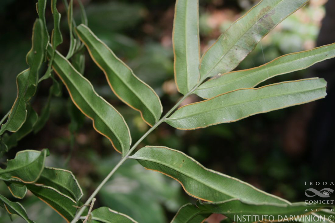 Rizomas cortos, de 0,5-2 cm de diámetro, con escamas castañas, oscuras, lineares a deltoides atenuadas, el margen con tricomas glandulares. Frondes de 40-80(-120) cm de largo, subdimorfas a monomorfas; pecíolos 1/2 a 3/4 de la longitud de la fronde, base con escamas lineares a deltoides, castañas; láminas deltoides, pinnado-pinnatífidas a pinnatisectas, con 3-6(-10) pares de pinnas opuestas o subopuestas, sésiles a pecioladas; pinnas proximales 1-furcadas a 1-2(-3) pinnado-pinnatífidas, de 6-25 cm de largo, pinnas medias enteras a 1-pinnatífidas de 5-20 cm, pinnas distales unidas por las bases decurrentes, con pinna apical de 5-15 cm; segmentos cartáceos, glabros, de base decurrente, ápice agudo, el margen aserrado; venación areolada, con 3-5 series de aréolas, raquis angostamente alado. Cenosoros ausentes en la base y en los extremos de los segmentos, pseudoindusios blanquecinos, con margen entero a levemente ondulado. Esporas triletes, verrugadas, de 30-60 µm de diámetro ecuatorial.