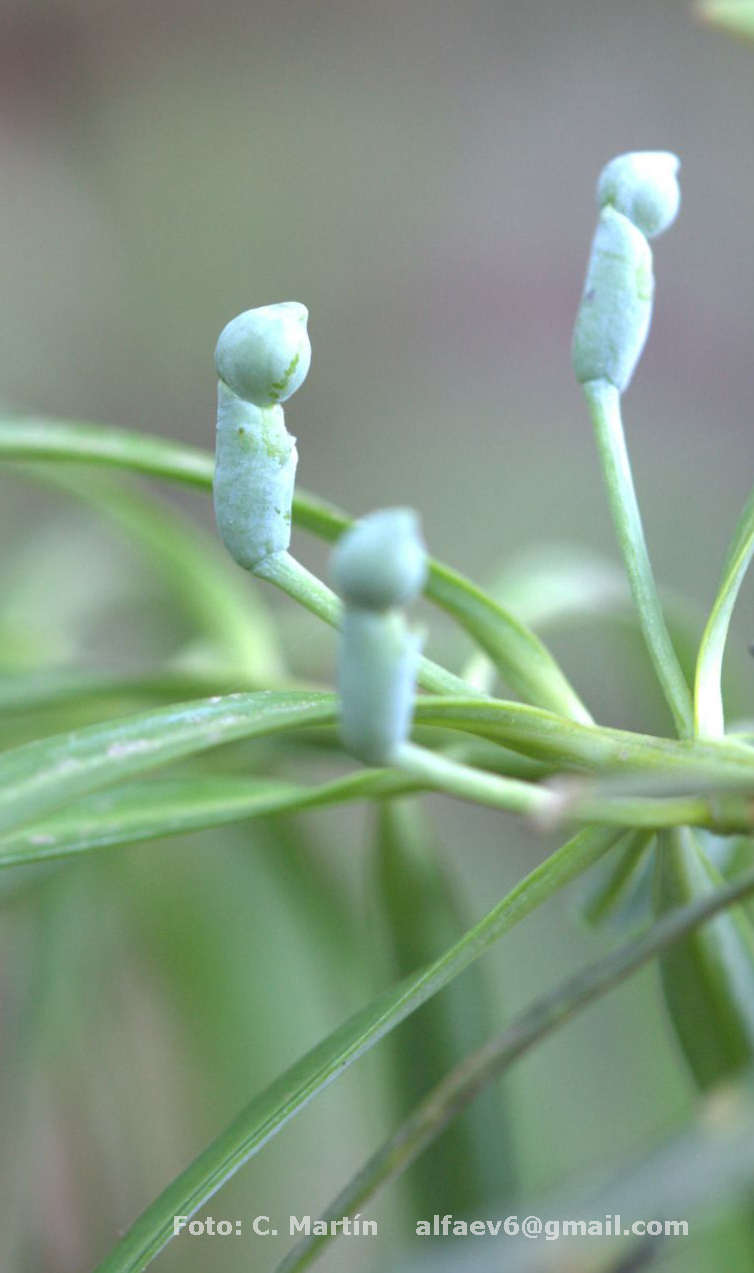Árboles hasta de 20 m de alto y troncos de 1,5 m de diámetro, muy ramificados, con rámulos subverticilados, ascendentes. Hojas dispuestas helicoidalmente, subpecioladas, lineares, de 5- 12 cm × 2-4 mm, acuminadas, margen apenas revoluto, algo coriáceas, nervadura central deprimida en el epifilo, con 2 bandas estomáticas poco visibles en el hipofilo, los estomas dispuestos en líneas discontinuas. Conos masculinos 2-5-fasciculados en el ápice de pedúnculos axilares, cilíndricos o amentiformes, de 10 -15 mm de largo; microsporofilos triangulares, sacos polínicos 2, globosos. Conos femeninos en el ápice de un pedúnculo axilar de 5-20 mm de largo; macrosporofilos 2-3, generalmente 1- ovulados, concrescentes, formando un receptáculo carnoso de 3-6 mm de largo, rojizo. Semillas de aspecto drupáceo, ovoides, de 6-8 mm de largo, ligeramente apiculadas.