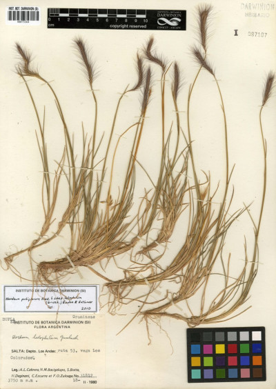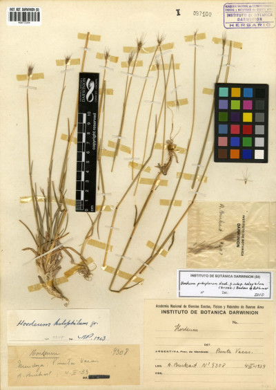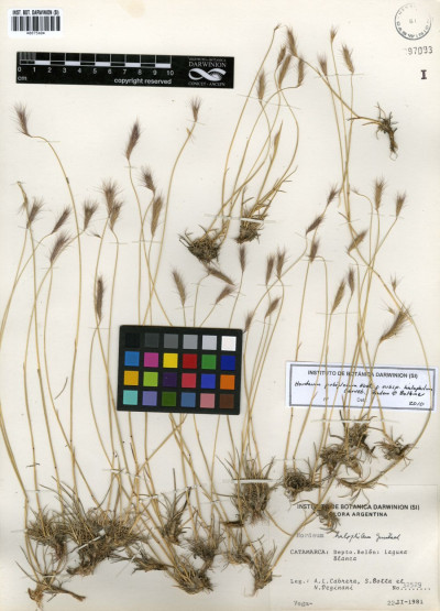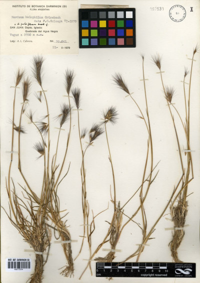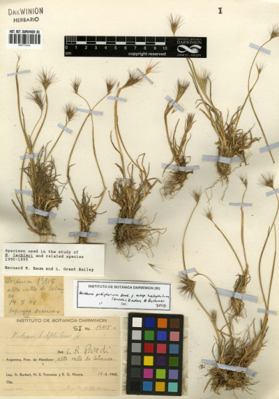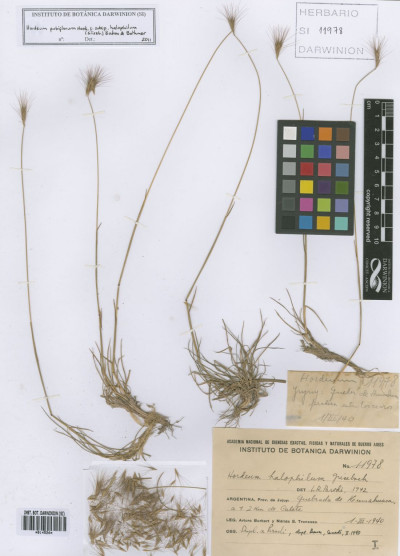 Hordeum halophilum Griseb. subsp. breviaristatum (Parodi ex Nicora) Baden(Parodi ex Nicora) Baden Nordic J. Bot. 16(3): 236, f. 4c.. 1996[1997]